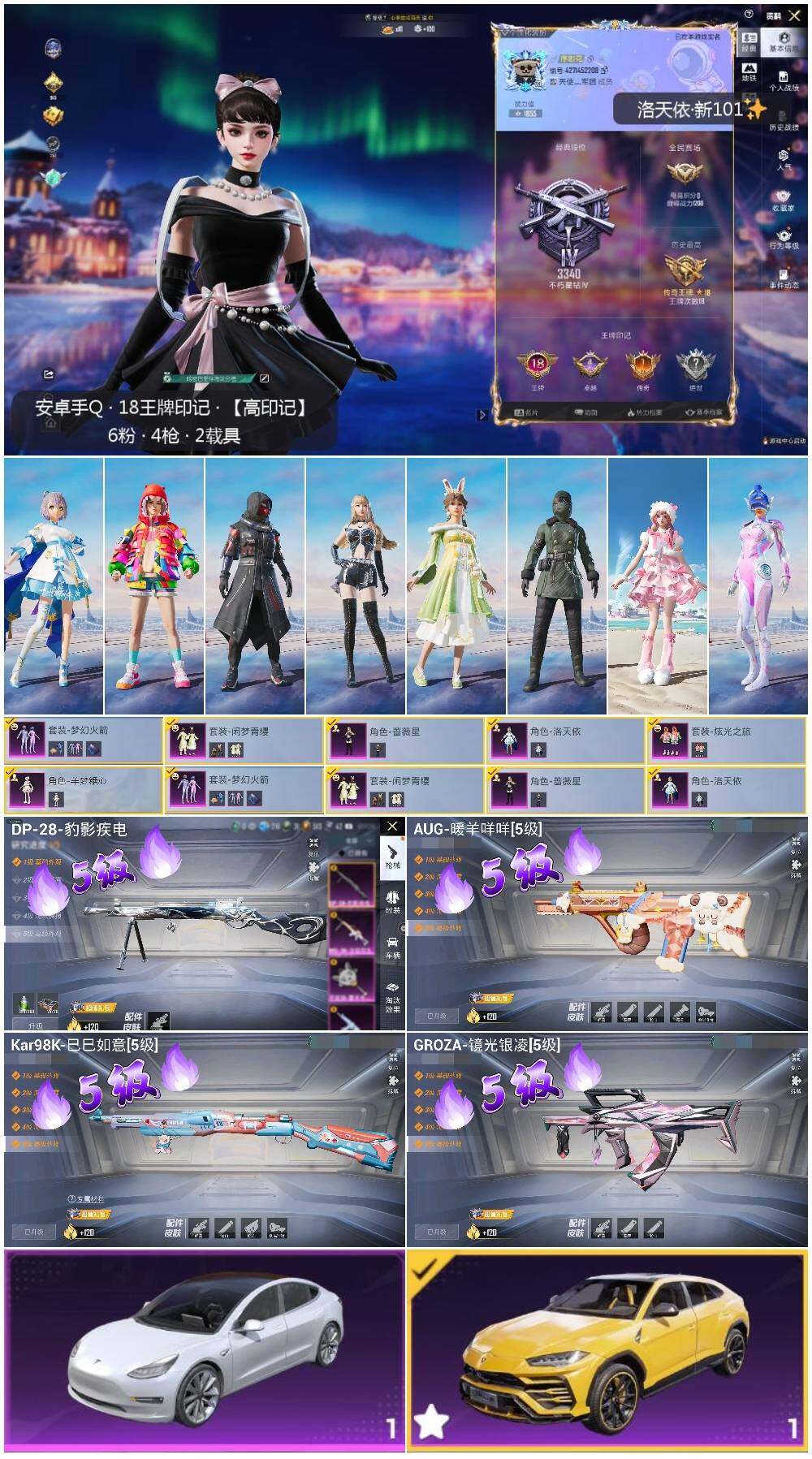 [14189224]【店主推荐捡漏号!可直接换绑】/地铁满天赋 安卓 手Q-6粉装-4特效枪-2载具-2粉色飞行器-9.4w热力值-18王牌印记-227套装-314枪皮【热门品类】:粉装-梦幻火箭,套装-奇异狩猎者,角色-军刀雅典娜,套装-龟仙人,套装-粉红小猪,熔岩游骑兵连帽夹克【粉色载具】:特斯拉Model 3(珍珠白),兰博基尼URUS(明艳黄)【粉色套装】:粉装-梦幻火箭,角色-洛天依,粉装-闲梦青缨,粉装-炫光之旅,角色-蔷薇星,角色-羊梦糖心【粉色枪皮等级】:GROZA-镜光银凌(五级),AUG-暖羊咩咩(五级),Kar98K-巳巳如意(五级),DP-28-豹影疾电(五级)【粉色飞行器】:梦幻火箭飞行器