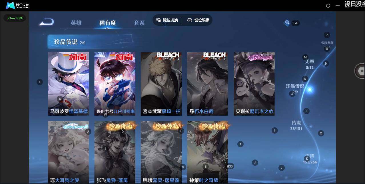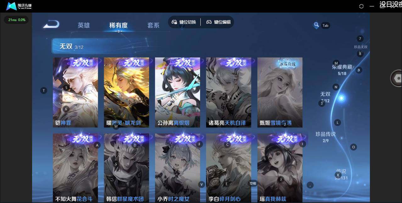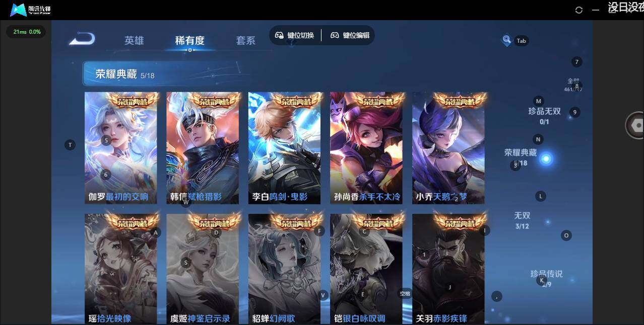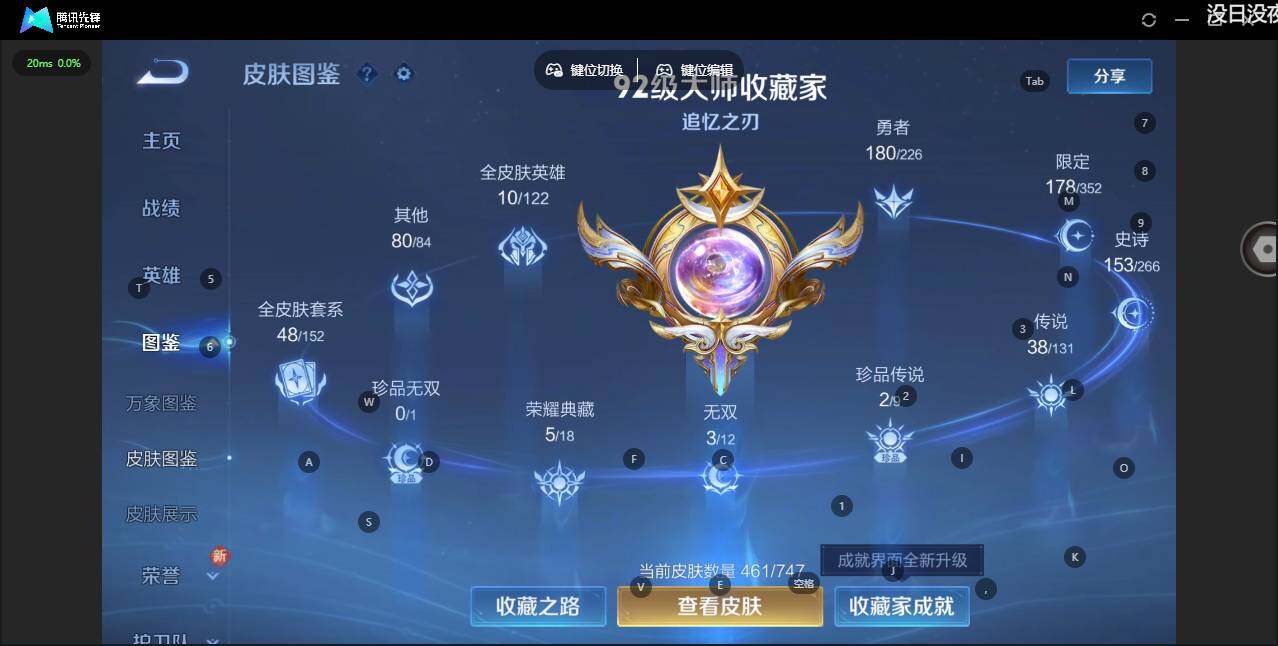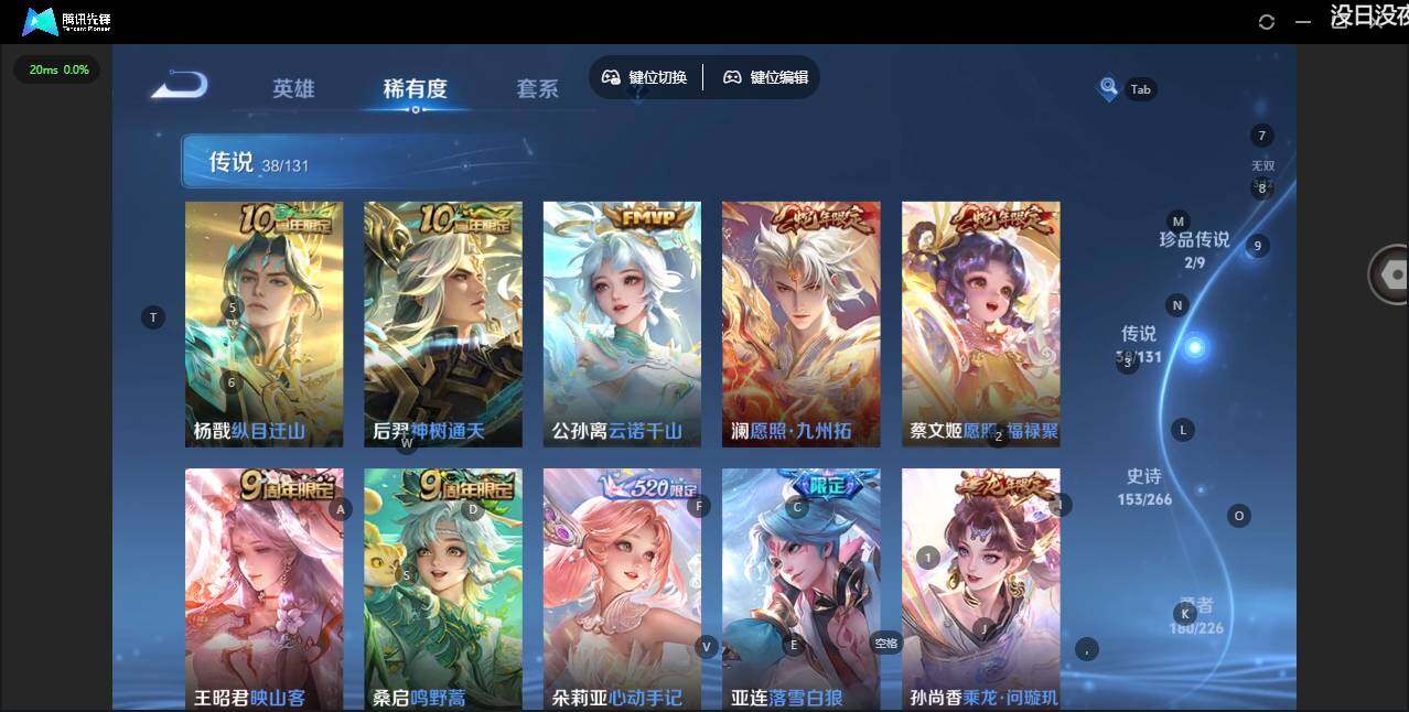 - PX_2091743-46 安卓QQ/尊贵铂金/226皮肤/123英雄/1典藏/0珍品无双/0无双/1珍品传说/7传说/59史诗/8稀有英雄 【1 珍品传说】怪盗基德 马可波罗, 【1 典藏皮肤】鸣剑·曳影 李白, 【7 传说皮肤】李逍遥 曜,地狱火 孙悟空,云鹰飞将 曜,神器·狴犴令 狄仁杰,挚爱之约 孙策,淬星耀世 赵云,鸣野蒿 桑启, 【59 史诗皮肤】白昼王子 嬴政,紫霞仙子 露娜,高山