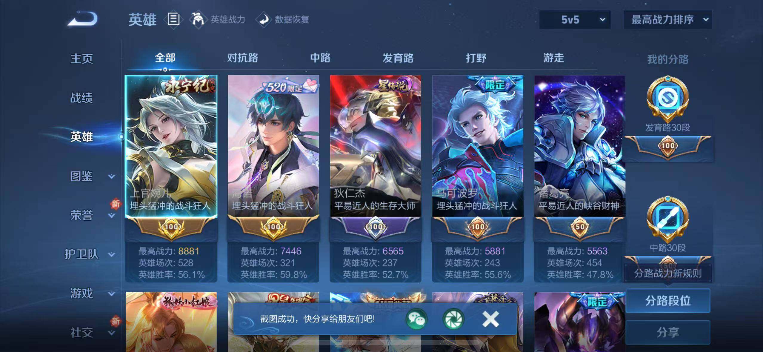 - PX_2052334-安卓Q 【可二次】 英雄数量:122 皮肤数量:176 贵族等级:贵族V7 荣耀典藏1 传说品质4 史诗品质42弑枪猎影 幻光神枪 愿照·九州拓 炽阳神光 鸣野蒿 心灵战警 鬼剑武藏 魅力维加斯 皇家上将 乱世虎臣 暗隐猎兽者 德古拉伯爵 幽灵船长 圣诞狂欢 乘风破浪 金属风暴 谪仙醉月 时之恋人女 唤灵魅影 赏金猎手 永昼 热力回旋 诗语江南 特工魅影 猫狗日记男 晚萤 修