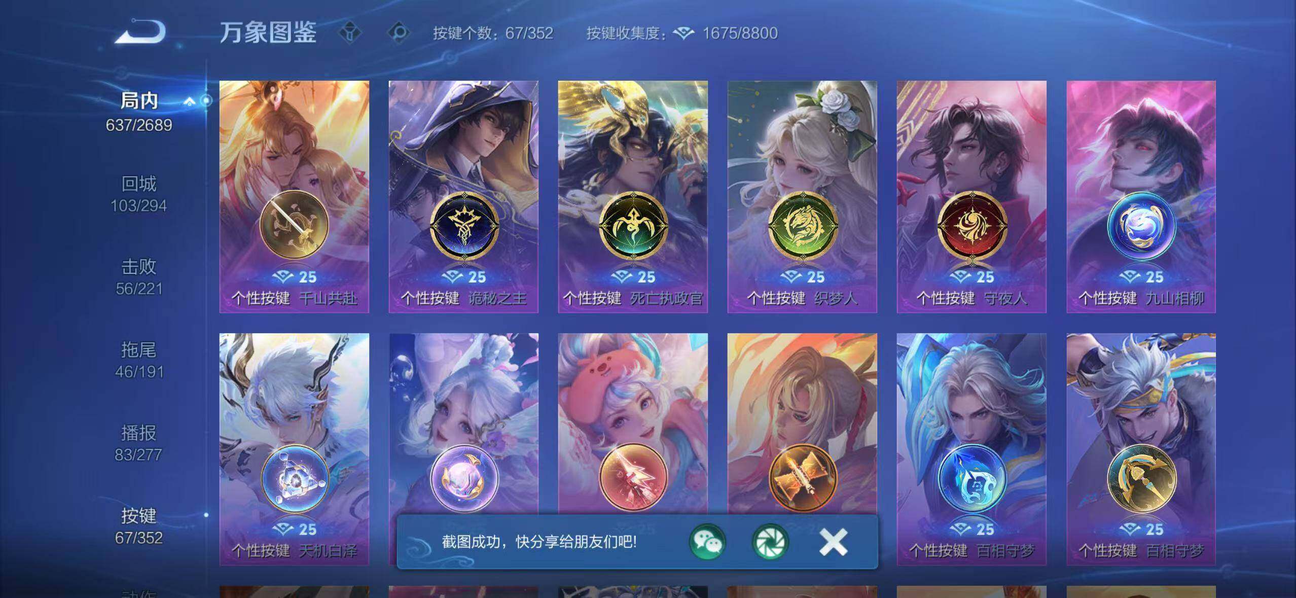 - [11471622]V8 1典藏 12传说 125英雄 271皮肤 可修改实名 优质装备:鸣剑·曳影,云鹰飞将(小将军),一念神魔,末日机甲-孙尚香(绿蚂蚱),时之恋人-刘备(电焊工),无双飞将,碎云,山海·苍雷引(电光曜子),鹤羽星尊 传说皮:幻光神枪 珍宝阁皮:优雅恋人,玩趣恶龙 限定皮:愿照·九州拓(澜年限),鸣野蒿,魔法小厨娘,五谷丰年,梁祝,孙行者,神器·万象笔,山海·玄木吟(马可年限) 史诗皮:化蝶舞,龙之律动,百相守梦-周瑜,茶境仙,埋骨钱,上官婉儿群星魔术团,蔬乡物语(鲁班七号),百相守梦-黄忠,紫霞仙子,黄金分割率,特工魅影,永昼,百相守梦(刘备),江河有灵,蒙恬荣光圣徽,魅语,晚萤,冰冠公主,末日机甲-吕布,猫狗日记-孙策,猫狗日记-大乔,节奏热浪,女仆咖啡,摇滚巨星,水果甜心,绅士熊喵,天才门将,星夜王子,心灵骇客,时之奇旅-安琪拉,功夫厨神,德古拉伯爵,暗隐猎兽者,幽灵船长,鬼剑武藏,暗渊魔法,心灵战警,舞动绿茵,地狱岩魂,纤云弄巧,缤纷独角兽,乘风破浪,逐浪之夏,月团寄思,水晶猎龙者,曙光守护者,唤灵魅影,金属风暴,原初追逐者,圣诞狂欢,鹰眼统帅,魅力维加斯,黎明之约,赏金猎手,无心,未来纪元-赵云