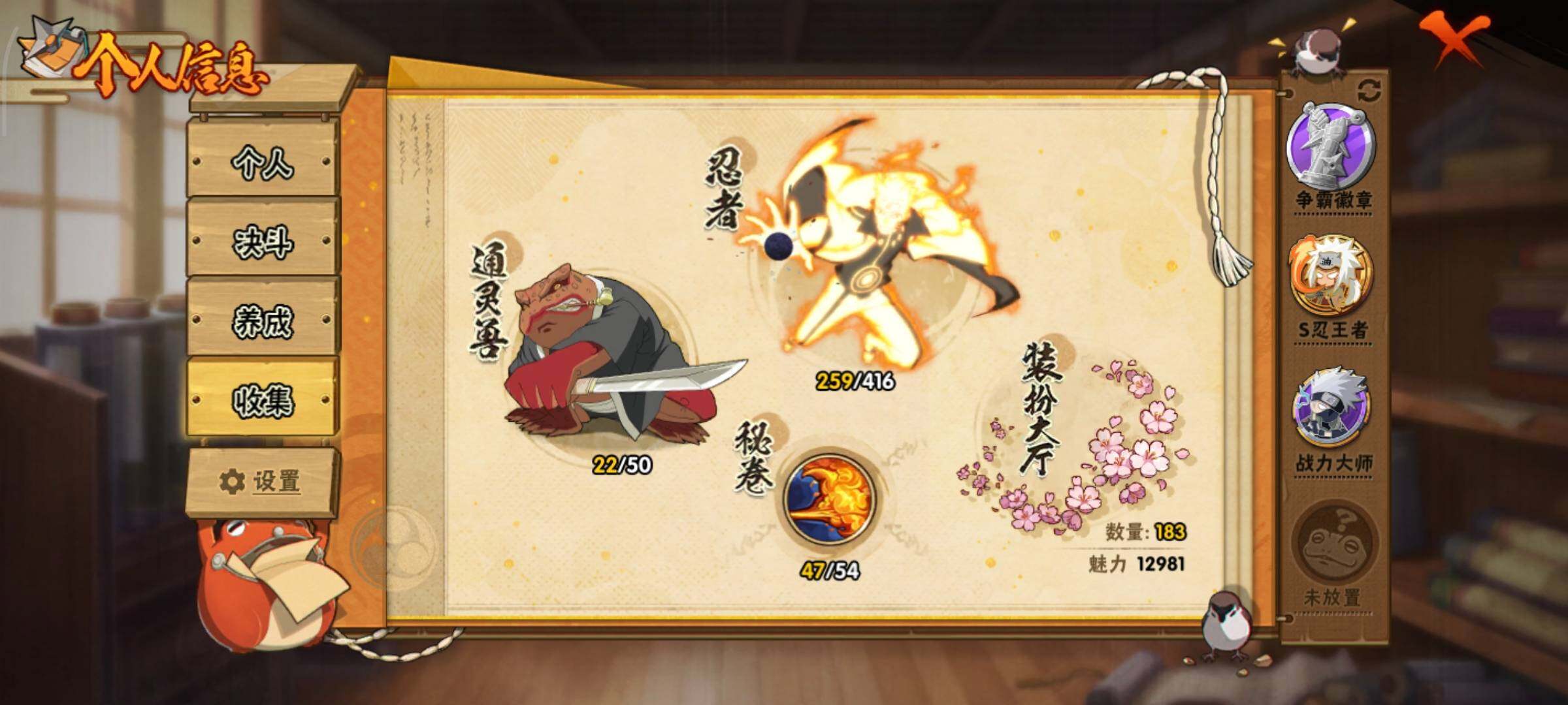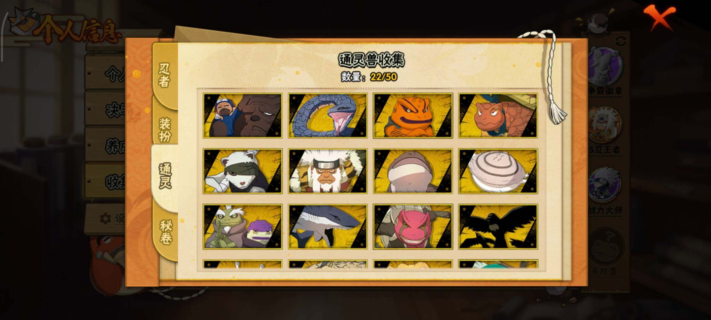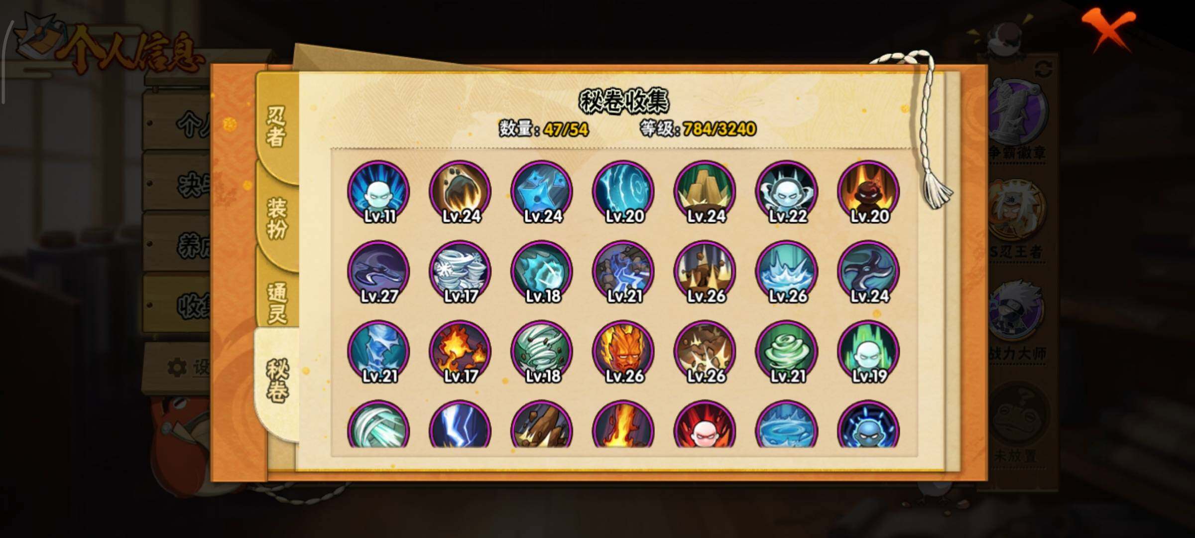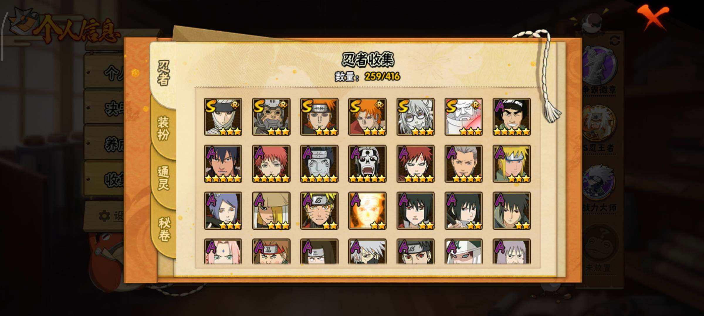 【A级忍者】:艾「青年」(2星),长门「青年」(2星),波风水门「青年」(3星),达鲁伊「博人传」(2星),迪达拉(3星),迪达拉「秽土转生」(2星),大蛇丸「晓」(2星),奇拉比(2星),奇拉比「忍界大战」(2星),飞段(4星),飞段「死司凭血」(5星),干柿鬼鲛(5星),漩涡博人「桃式显现」(2星),漩涡鸣人「仙人模式」(2星),漩涡鸣人「九尾查克拉」(2星),迈特凯(5星),旗木卡卡西「万花筒写轮眼」(2星),我爱罗「疾风传」(4星),我爱罗「忍界大战」(2星),蝎(5星),小南(3星),小南「漂泊浪客」(2星),角都(2星),角都「地怨虞」(2星),猿飞阿斯玛(5星),宇智波止水(2星),宇智波鼬(2星),宇智波佐助「须佐能乎」(2星),宇智波佐助「万花筒写轮眼」(2星),药师兜「半蛇斗篷」(2星),照美冥「五代目水影」(2星),日向宁次「忍界大战」(2星),长十郎「六代目水影」(2星),佩恩·六道「漂泊浪客」(2星),猿飞木叶丸「博人传」(2星),黑土「博人传」(2星),千手扉间「漂泊武士」(2星),春野樱「百豪」(2星),秋道丁次「忍界大战」(2星),千代「近松十人卫」(2星),不风(2星),加藤