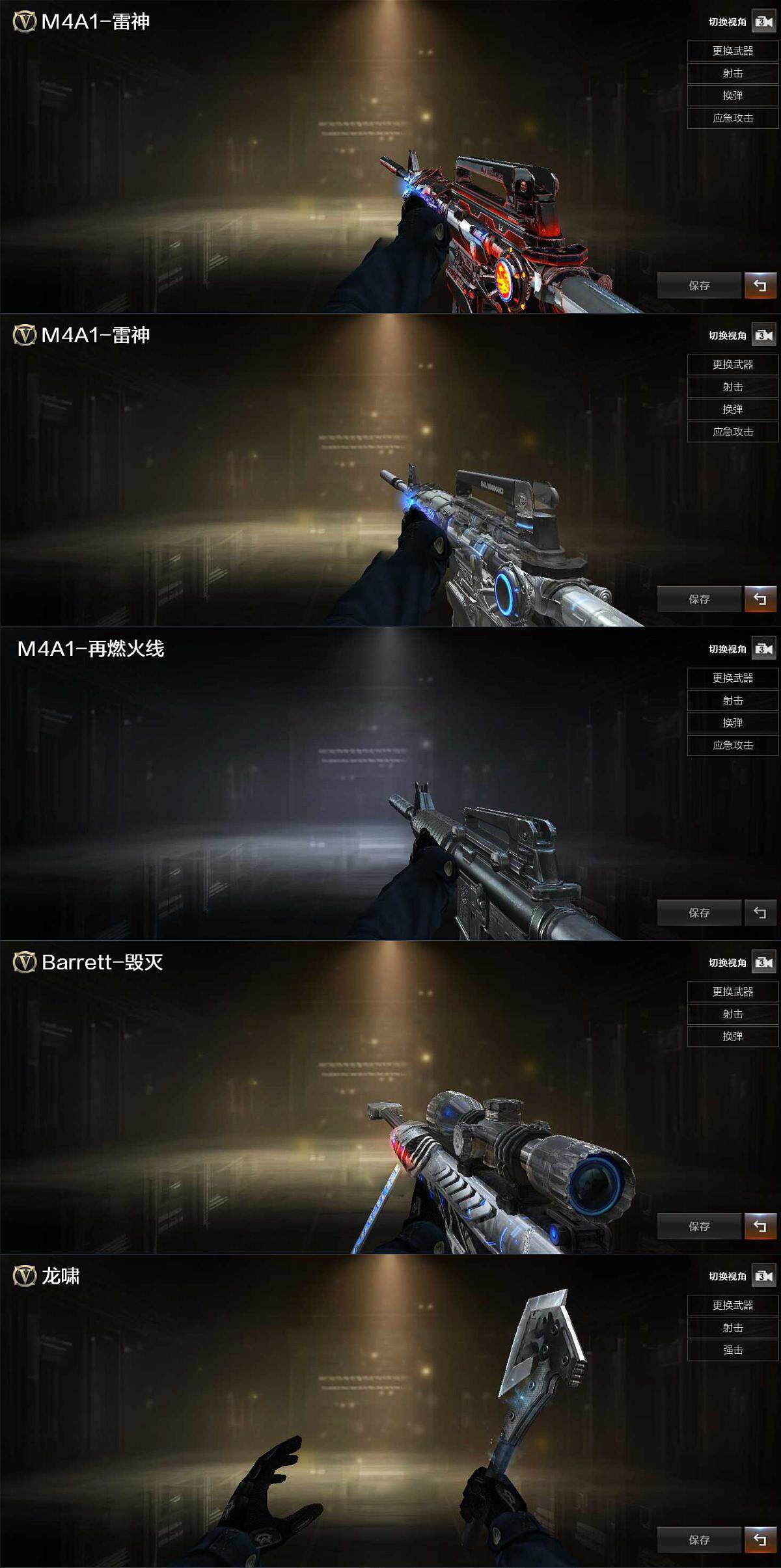 【音效卡】:M4A1-雷神音效卡,Barrett-毁灭音效卡,炼狱-百战金芒-庆典舞曲音效卡,AWM-昌龙-怀旧音效卡