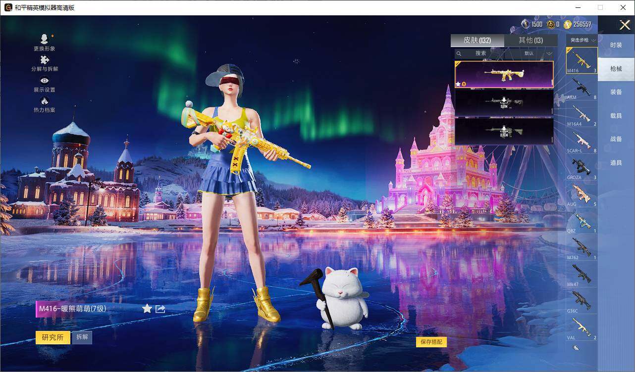 AKM-绿萝繁花,M416-暖熊萌萌,AUG-暖羊咩咩,汤姆逊-怪笑疯兔,Kar98K-巳巳如意,PKM-江南烟雨