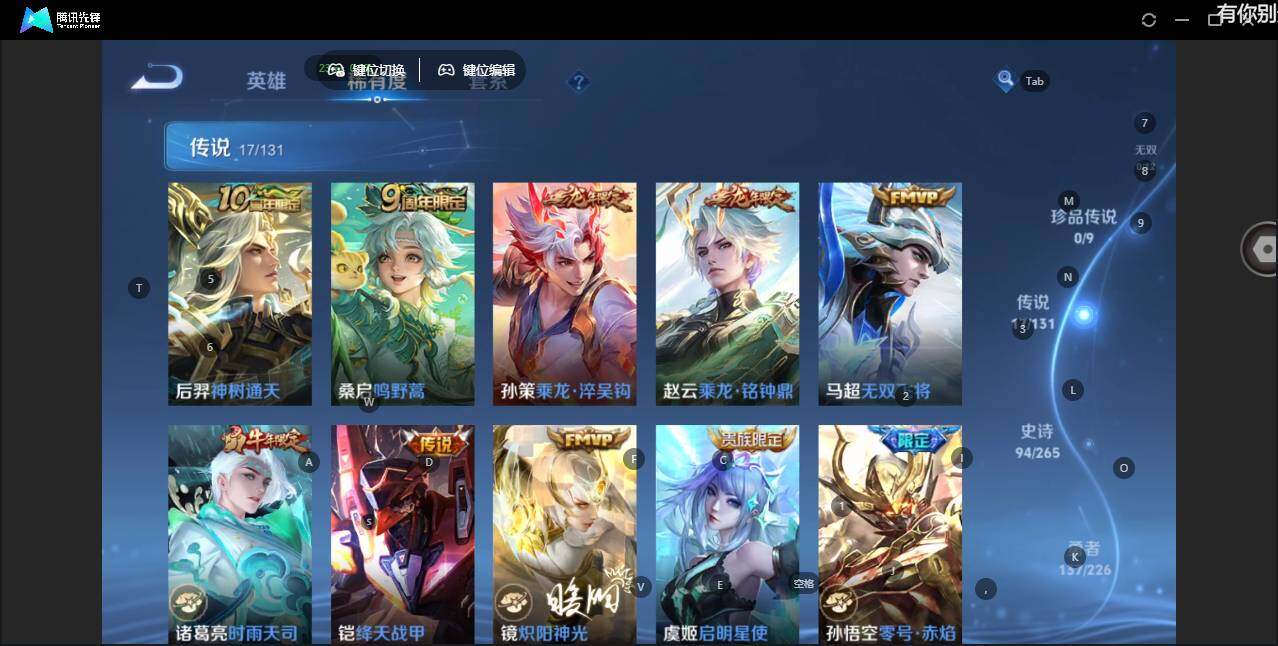 - [12297388]V7 2典藏 7传说 118英雄 153皮肤 可修改实名 优质装备:星空梦想(太空人),全息碎影(猴子典藏),一念神魔,淬星耀世,无双飞将,灼幽烈阳 传说皮:幻光神枪 珍宝阁皮:妄想食味 限定皮:愿照·九州拓(澜年限),鸣野蒿,李小龙 史诗皮:化蝶舞,龙之律动,茶境仙,破空之剑,芈月浮光幕影,蔬乡物语(鲁班七号),百相守梦-黄忠,织梦人,千年之狐,江河有灵,高渐离燃音魔法,偶像歌手,猫狗日记-孙策,猫狗日记-大乔,时之恋人-孙尚香,节奏热浪,水果甜心,绅士熊喵,星夜王子,心灵骇客,时之奇旅-安琪拉,暗隐猎兽者,幽灵船长,鬼剑武藏,乘风破浪,曙光守护者,圣诞狂欢,鹰眼统帅,未来纪元-赵云