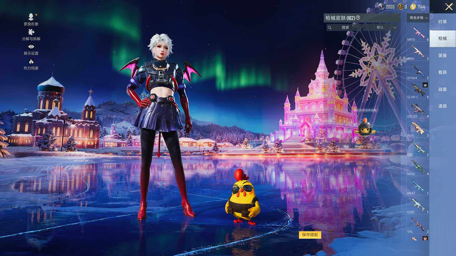 M416-电玩时刻,GROZA-镜光银凌,AUG-暖羊咩咩,M762-青锋波束,UMP45-量子极限,Kar98K-巳巳如意