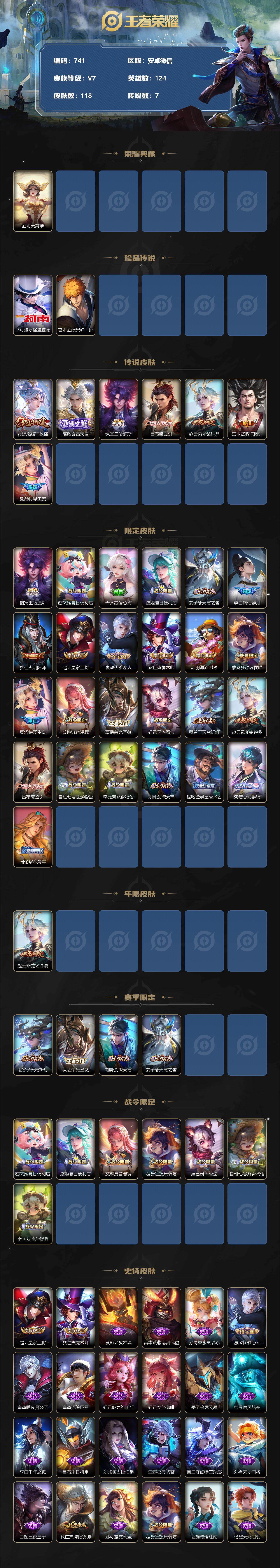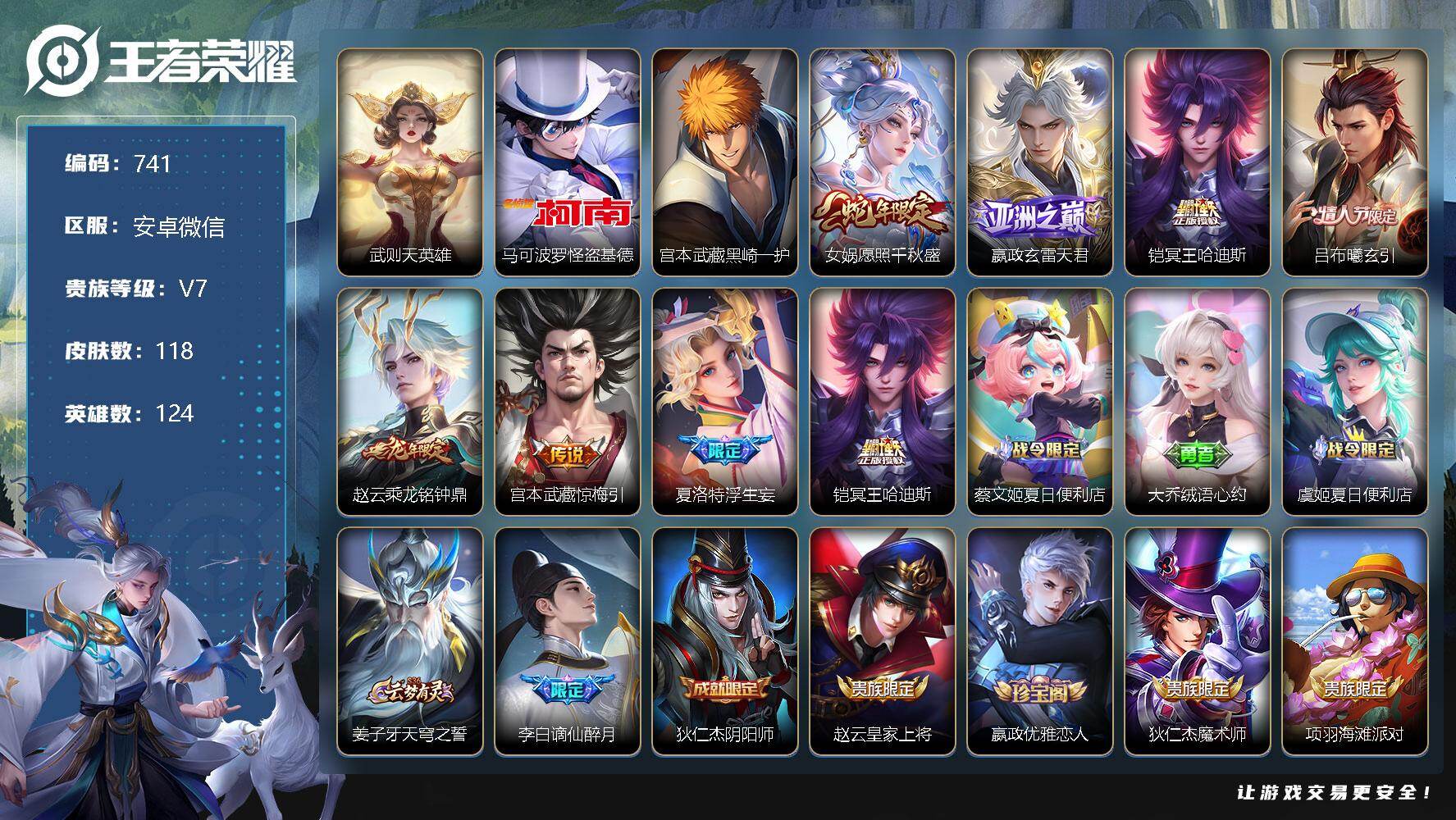[14234690]安卓WX-V7-最强王者段位-124英雄-118皮肤-0典藏-0珍品无双-0无双-2珍品传说-7传说-40史诗