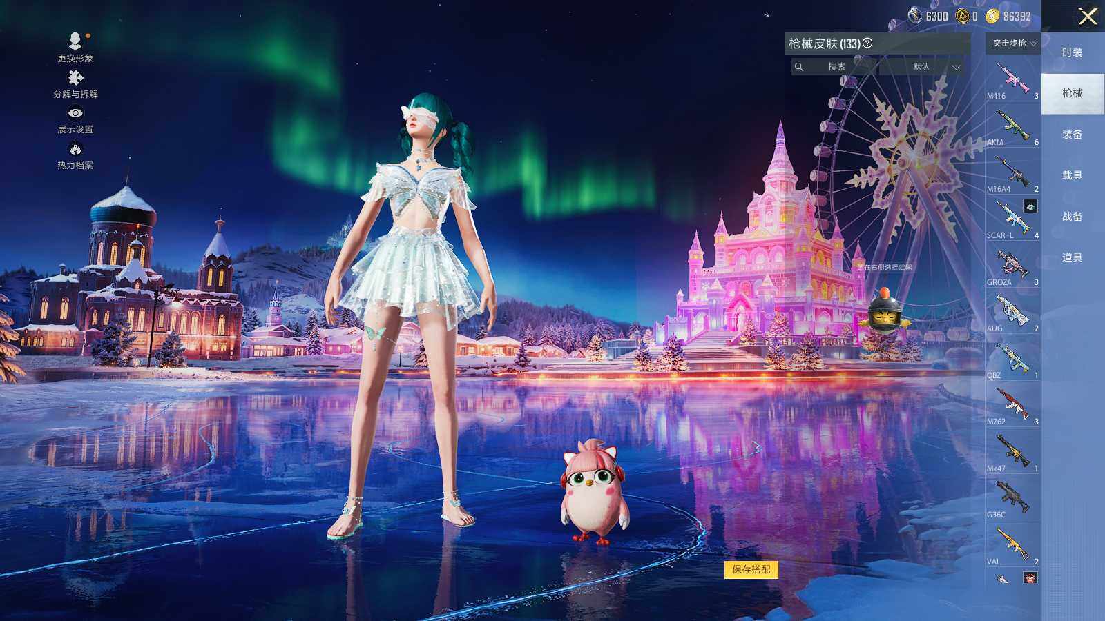 AKM-绿萝繁花,M416-电玩时刻,GROZA-镜光银凌,Kar98K-巳巳如意