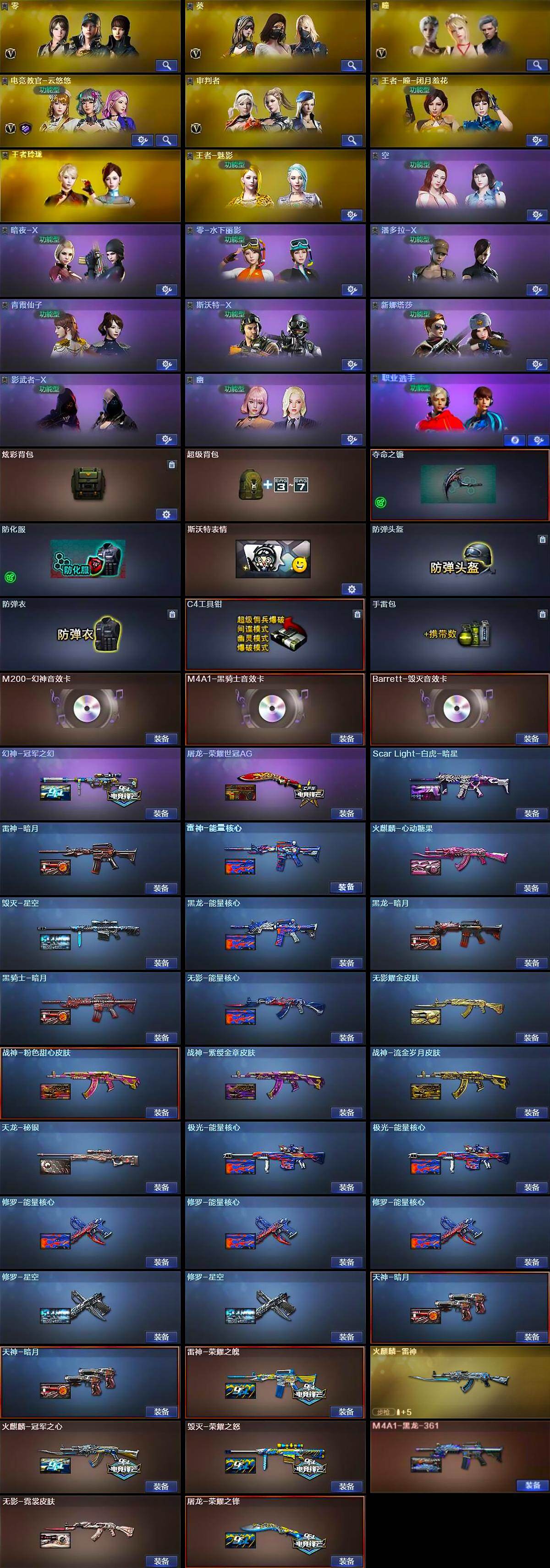 【皮肤】:幻神-冠军之幻,Scar Light-白虎-暗星,雷神-暗月,雷神-能量核心,雷神-荣耀之魄,火麒麟-雷神,火麒麟-冠军之心,火麒麟-心动糖果,毁灭-荣耀之怒,毁灭-星空,黑龙-能量核心,黑龙-暗月,M4A1-黑龙-361,黑骑士-暗月,无影-能量核心,无影耀金皮肤,无影-霓裳皮肤,战神-粉色甜心皮肤,战神-紫绶金章皮肤,战神-流金岁月皮肤,AK47-B-常胜将军-刘备,AK47-B-常胜将军-孙权*2,天龙-秘银,极光-能量核心*2,修罗-能量核心*3,修罗-星空*2,天神-暗月*2,屠龙-荣耀之锋,屠龙-荣耀世冠AG