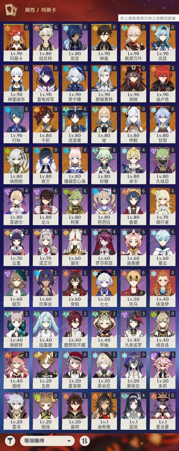 [14263091]60级/31黄/女主/20个五星角色/6个五星武器