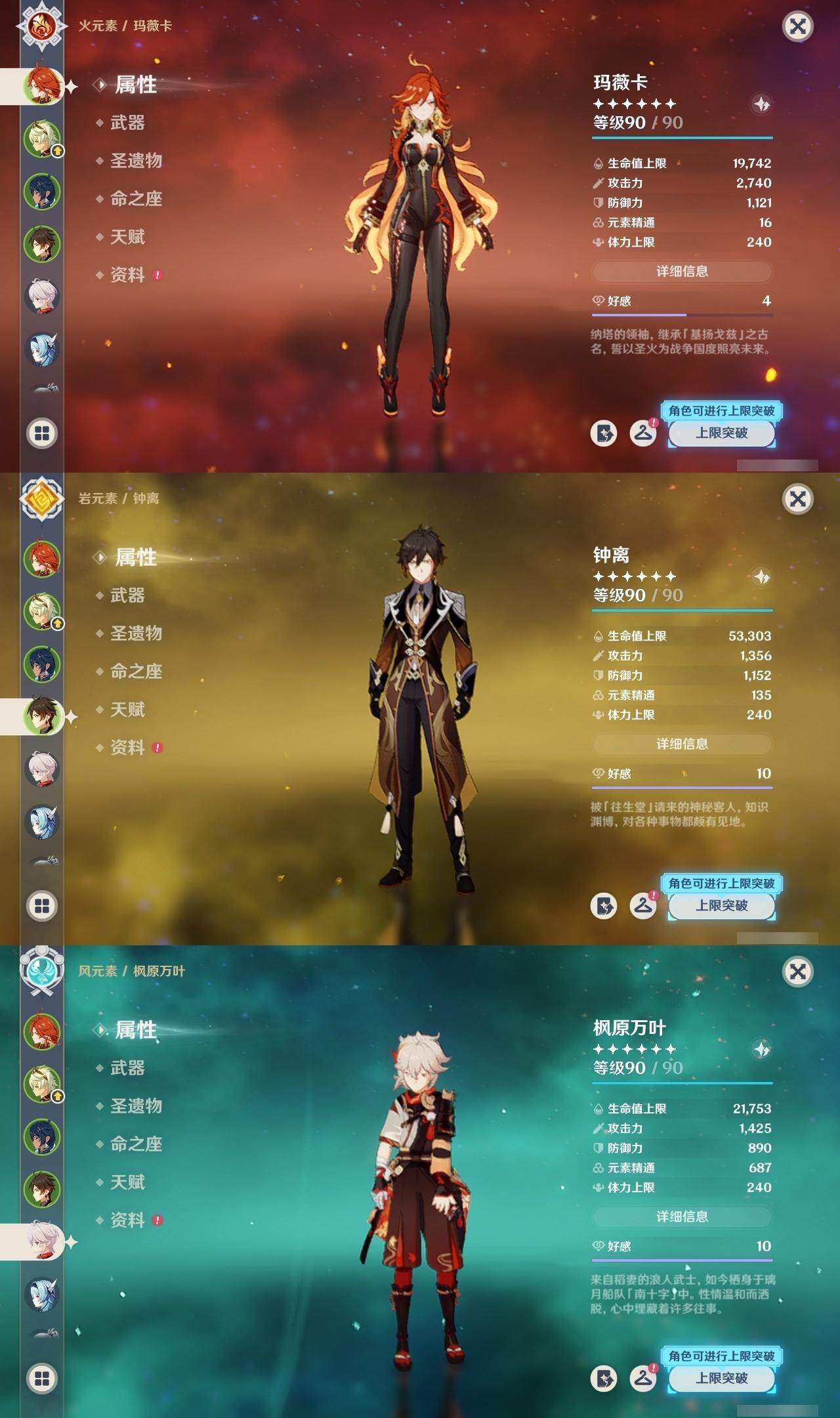钟离,枫原万叶,优菈,神里凌华,雷电将军,胡桃,迪卢克,琴,申鹤,甘雨,珊瑚宫心海,七七