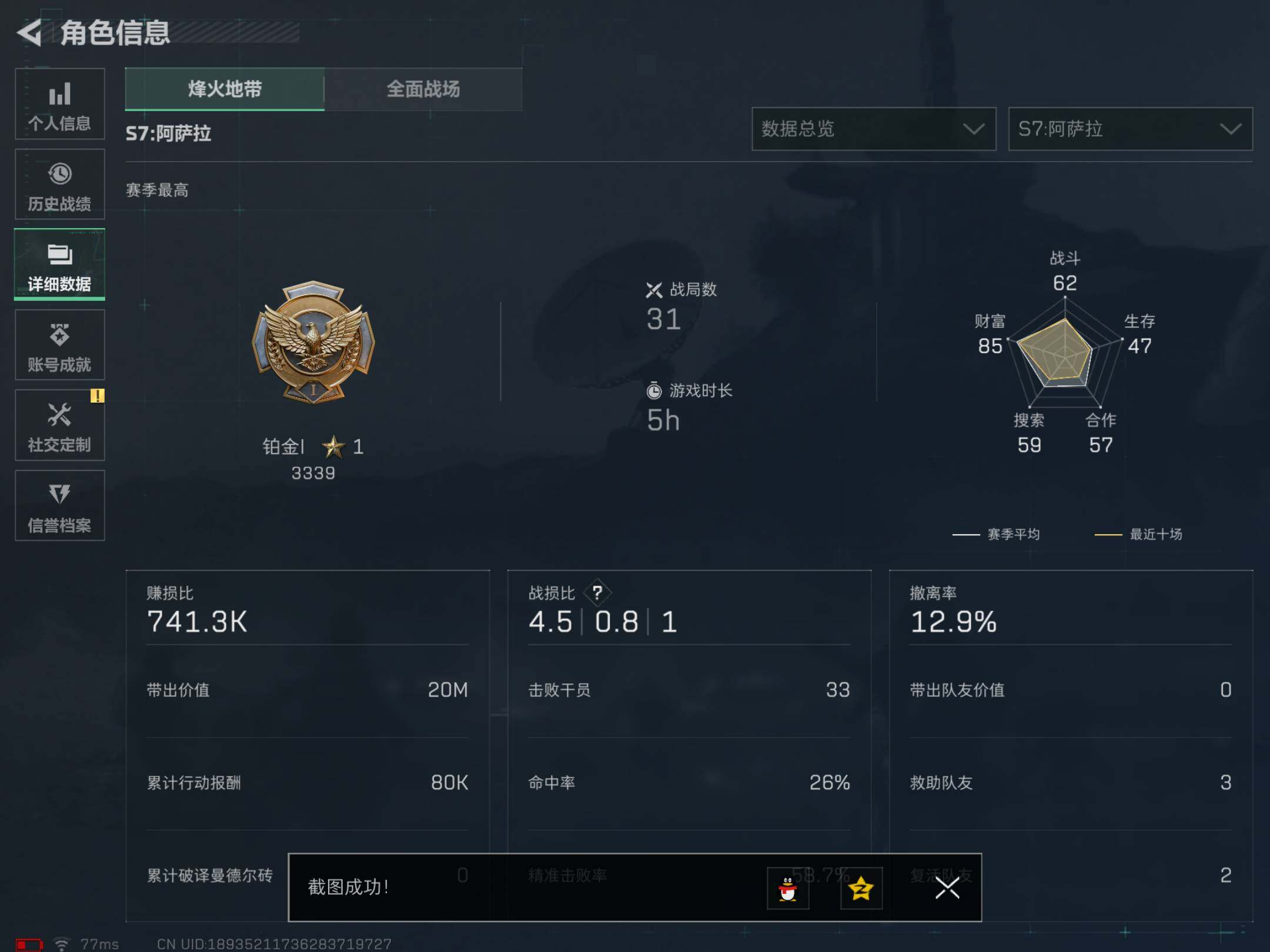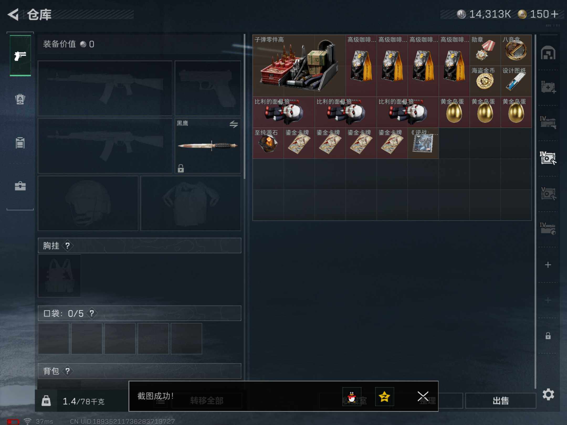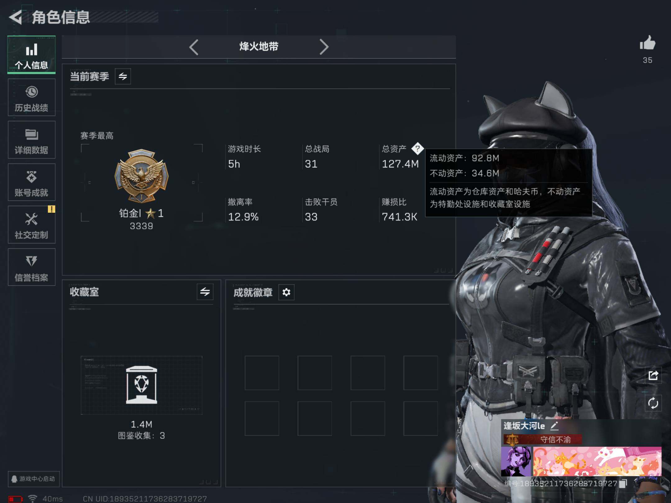 14313k哈伏币-92m流动资产-60烽火等级-铂金-39战场等级-上等兵