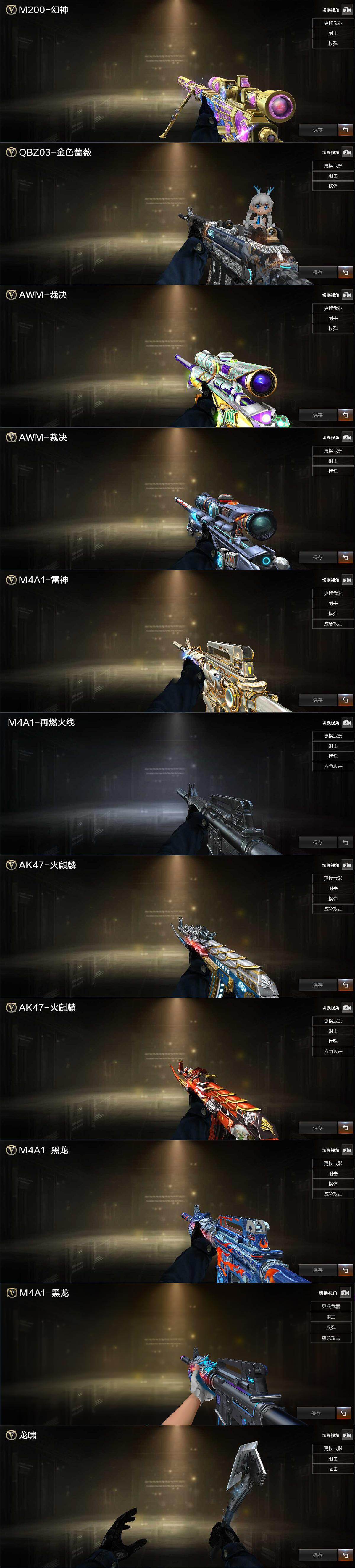 【热门武器】:QBZ03-金色蔷薇,M200-幻神,金色蔷薇-古蛇迷踪,修罗-古蛇迷踪,沙鹰-修罗,炽芒蝶刃