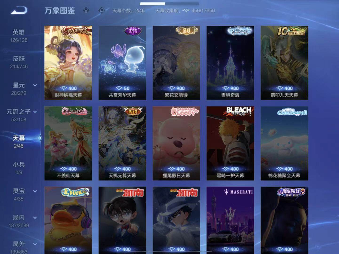 - [10958976]【商品标题】:安卓Q-V7-至尊星耀II段位-123英雄-220皮肤-1典藏-0珍品无双-0无双-0珍品传说-4传说-61史诗 【荣耀典藏】:铠银白咏叹调 【内测皮肤】:孙尚香蔷薇恋人,嬴政优雅恋人,狂铁特工战影 【传说皮肤】:狄仁杰超时空战士,李信一念神魔,马可波罗深海之息,桑启鸣野蒿 【限定皮肤】:白起狰,姜子牙天穹之誓,狄仁杰阴阳师,赵云皇家上将,赵云龙胆,墨子神迹守卫,嬴政优雅恋人,孙尚香蔷薇恋人,庄周高山流水,钟无艳超时空战士,白起夜都怪侠,芈月幻夜卜梦,元歌无心,甄姬落雪兰心,典韦穷奇,马可波罗暗影游猎,马可波罗深海之息,马可波罗山海玄木吟,狄仁杰魔术师,狄仁杰万华元夜,达摩星际陆战队,达摩沙漠行僧,项羽海滩派对,老夫子航海奇遇记,程咬金演武夺筹,韩信傲雪梅枪,王昭君午后时光,兰陵王金庭之子,后羿如梦令,李元芳云中旅人,钟馗驱傩正仪,太乙真人饕餮,鬼谷子五谷丰年,黄忠烈魂,黄忠火炮绅士,苏烈千军破阵,百里玄策原初追逐者,百里守约朱雀志,弈星混沌棋,梦奇顽趣,沈梦溪大漠名商,明世隐吟游魔法,裴擒虎李小龙,裴擒虎擒涛扼浪,狂铁御狮,狂铁电玩高手,米莱狄御霄,米莱狄胡桃异想国,云中君时之祈愿,伽罗天狼溯光者,上官婉儿梁祝,嫦娥拒霜思,嫦娥暖冬兔眠,鲁班大师探海日志,桑启海盐诗旅,暃星界游侠,阿古朵江河有灵,张良古海寻踪,鬼谷子天穹祈灯,姬小满妄想食味,沈梦溪龙舞盛年,刘邦剑破天穹,程咬金群星魔术团,周瑜熔金海岸 【年限皮肤】:百里守约朱雀志,黄忠烈魂,赵云龙胆,马可波罗山海玄木吟 【赛季限定】:白起狰,典韦穷奇,狄仁杰万华元夜,达摩沙漠行僧,程咬金演武夺筹,兰陵王金庭之子,张良古海寻踪,李元芳云中旅人,钟馗驱傩正仪,太乙真人饕餮,苏烈千军破阵,百里玄策原初追逐者,弈星混沌棋,梦奇顽趣,沈梦溪大漠名商,裴擒虎擒涛扼浪,狂铁御狮,米莱狄御霄,鲁班大师探海日志,桑启海盐诗旅,鬼谷子天穹祈灯,刘邦剑破天穹,姜子牙天穹之誓 【战令限定】:墨子神迹守卫,钟无艳超时空战士,白起夜都怪侠,芈月幻夜卜梦,甄姬落雪兰心,马可波罗暗影游猎,达摩星际陆战队,老夫子航海奇遇记,王昭君午后时光,黄忠火炮绅士,明世隐吟游魔法,狂铁电玩高手,米莱狄胡桃异想国,嫦娥暖冬兔眠,暃星界游侠 【史诗皮肤】:鲁班七号电玩小子,赵云皇家上将,赵云未来纪元,貂蝉圣诞恋歌,甄姬冰雪圆舞曲,狄仁杰魔术师,廉