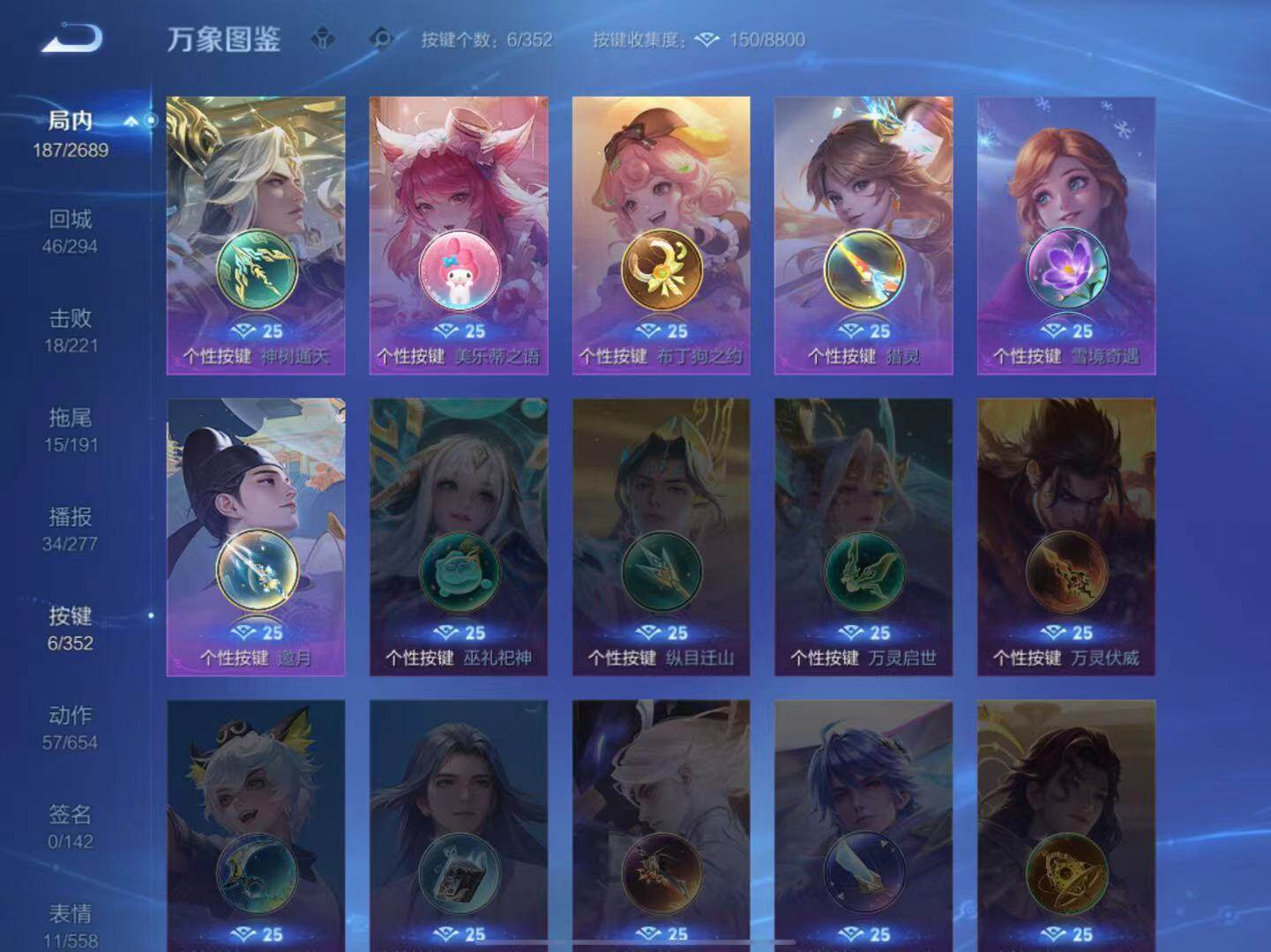 白起狰,太乙真人饕餮,曹操烛龙,芈月重明,典韦穷奇,狂铁御狮,米莱狄御霄,盾山御銮,夏侯惇朔风刀,明世隐疑决卦,老夫子醍醐杖,鬼谷子原初探秘者,狄仁杰万华元夜,程咬金演武夺筹,钟馗驱傩正仪,苏烈千军破阵,吕布猎兽之王,嬴政白昼王子,元歌云间偶戏,弈星混沌棋,达摩沙漠行僧,兰陵王金庭之子,沈梦溪大漠名商,李元芳云中旅人,桑启海盐诗旅,裴擒虎擒涛扼浪,张良古海寻踪