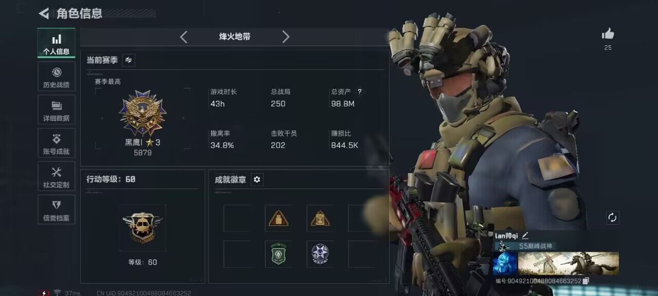 [14295630]【店主推荐捡漏号!可直接换绑】116k哈伏币-91m流动资产-60烽火等级-黑鹰-48战场等级-军士长