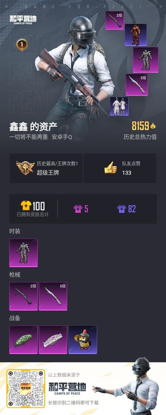 - PX_2079777- 苹果手Q-7王牌印记-7粉装-6特效枪-0载具-87333热力值-223套装-296枪皮-2卓越印记-0传奇印记 【7粉装】,天使彩虹糖,幻彩电音,霓虹漫游,未来领航者,炙焰牛王,幻彩马卡龙,烟云彩露 【6特效枪】AKM-甜心宝贝-7级 SCAR-L-锦绣绵绵-5级 M416-电玩时刻-5级 M416-风花雪月-4级 M762-青锋波束-5级 Kar98K-巳巳如意-5级