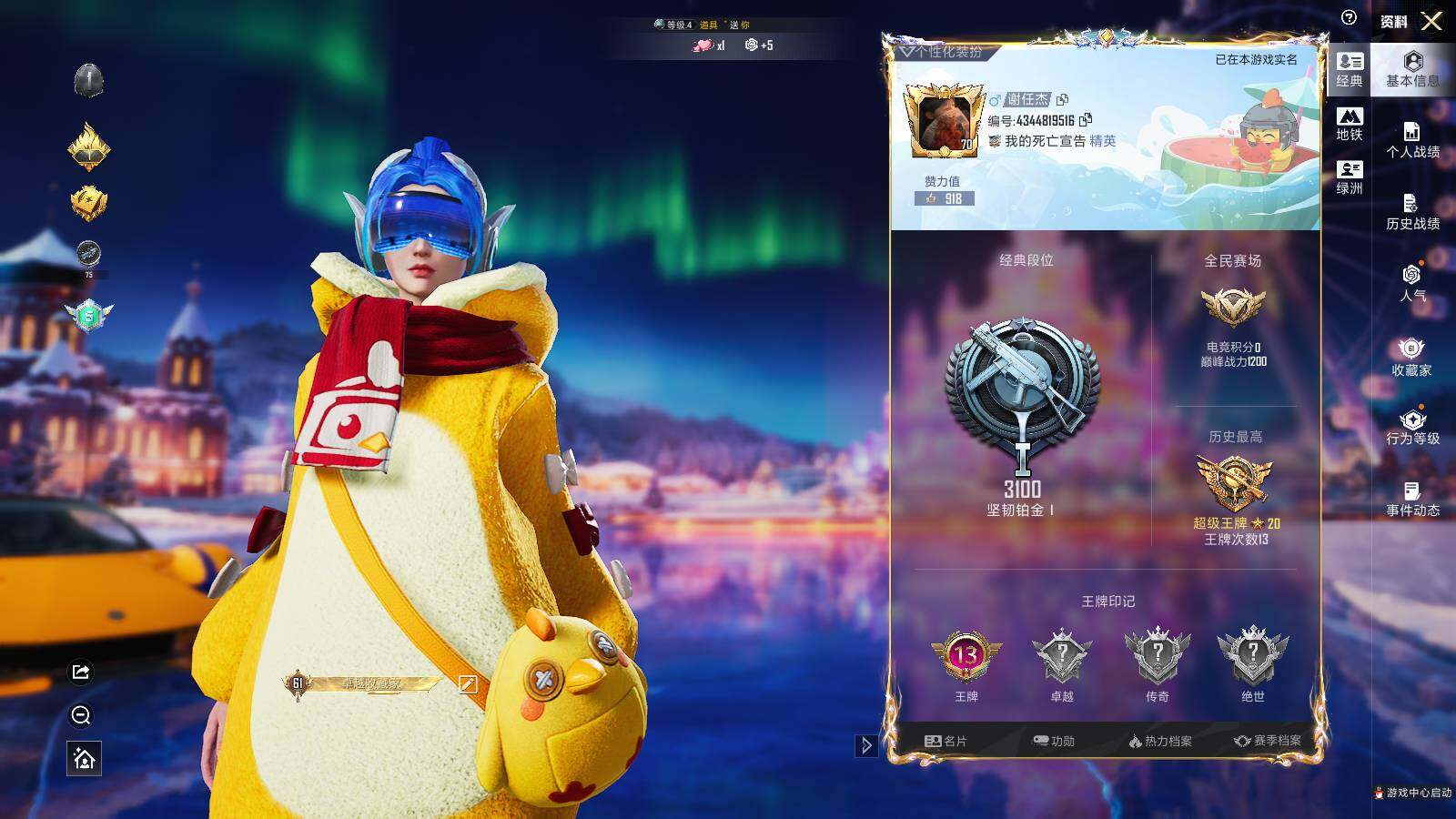 - [12089456]V10 10典藏 30传说 126英雄 419皮肤 典藏英雄武则天 可修改实名 优质装备:天鹅之梦(小乔典藏),星空梦想(太空人),倪克斯神谕(宇宙婆娘),无限飓风号(高达),活力突击,杀手不太冷,大秦宣太后,鸣剑·曳影,全息碎影(猴子典藏),神鉴启示录,黄金狮子座,黄金射手座,冠军飞将,云鹰飞将(小将军),绛天战甲(鸡嘴战神),黄金白羊座,猫影幻舞,久胜战神,炽阳神光,一念神魔,云霓雀翎,地狱火,零号·赤焰,地狱之眼,飞鸢探春,胖达荣荣,乞巧织情,时之恋人-刘备(电焊工),游龙清影(小青龙),淬星耀世,艾琳觅芳踪,涂山容容 传说皮:幻光神枪 珍宝阁皮:妄想食味,优雅恋人,玩趣恶龙 限定皮:陌上桑,鸣野蒿,傲雪梅枪,补天,星穹之声,白晶晶,时雨天司(水龙头),神威(电光马子),遇见飞天,高山流水,降魔,五谷丰年,冰锋战神,幽恒(沐浴露),天狼运算者,梁祝,御风骁将(吕布年限),天狼狩猎者,逐梦之星,烈魂,天狼溯光者,奔雷神使(牛魔年限),祈雪灵祝(雪兔子),李小龙,逐梦之影,逐梦之光,朱雀志(守约年限),霸王别姬-项羽,霸王别姬-虞姬,奇迹圣诞,默契交锋-兰陵王,默契交锋-花木兰,冰霜恋舞曲,乒乒小将,神奇女侠,匿光追影者,女儿国国王,深海之息(深海大菠萝),唐三藏 史诗皮:灵蛊蚀心,星界战将,幻珠鲛人,破空之剑,东方月初,琥珀纪元伽罗,百相守梦-黄忠,织梦人,遇见神鹿,紫霞仙子,苍穹之光,电玩小子(小书包),黄金分割率,特工魅影,千年之狐,永昼,江河有灵,魅语,百解令(蒙犽),高渐离燃音魔法,蒙恬荣光圣徽,无限星赏官,冰冠公主,青蛇,偶像歌手,白蛇,晚萤,暗夜猫娘,龙骑士(小龙虾),末日机甲-吕布,猫狗日记-孙策,猫狗日记-大乔,乱世虎臣,节奏热浪,修罗,女仆咖啡,摇滚巨星,水果甜心,绅士熊喵,天才门将,星夜王子,心灵骇客,时之奇旅-安琪拉,功夫厨神,德古拉伯爵,暗隐猎兽者,幽灵船长,鬼剑武藏,暗渊魔法,心灵战警,乐园奇幻夜,天秀·启明,舞动绿茵,地狱岩魂,诗语江南,纤云弄巧,拒霜思,缤纷独角兽,乘风破浪,逐浪之夏,水晶猎龙者,曙光守护者,热力回旋,箭羽风息,金属风暴,原初追逐者,圣诞狂欢,圣诞恋歌,鹰眼统帅,暗夜贵公子,魅力维加斯,黎明之约,赏金猎手,滕王阁序,未来纪元-赵云