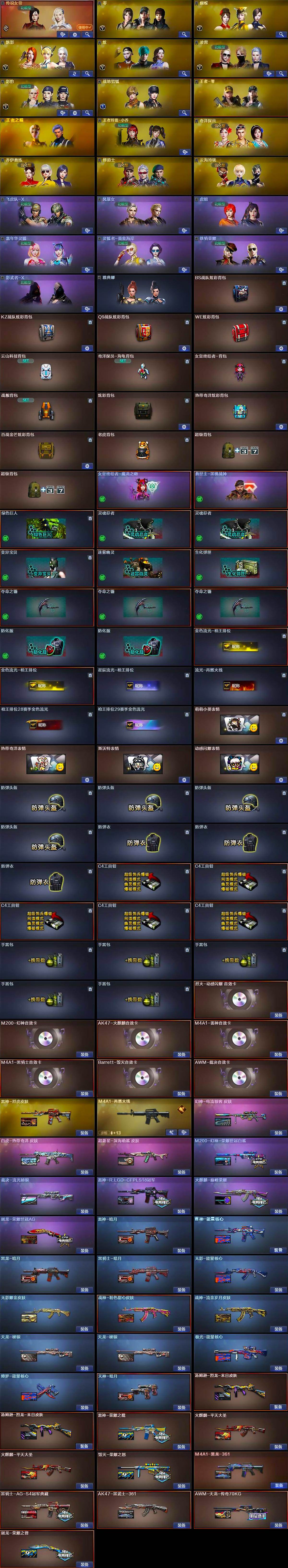 【皮肤】:M200-幻神-荣耀世冠白鲨,幻神-电流骇客 皮肤,白虎-热带奇洋 皮肤,裁决-流光秘银,汤姆逊-烈龙-末日皮肤*2,雷神-暗月,雷神-能量核心,雷神-荣耀之魄,雷神-R.LGD-CFPLS18冠军,雷神-烈虎皮肤,M4A1-再燃火线,火麒麟-平天大圣*2,火麒麟-巅峰荣耀,毁灭-荣耀之怒,黑龙-暗月,M4A1-黑龙-361,黑骑士-暗月,黑骑士-AG-S4冠军典藏,无影-能量核心,无影耀金皮肤,AK47-黑武士-361,超新星-深海萌鲨 皮肤,战神-粉色甜心皮肤,战神-流金岁月皮肤,AK47-B-常胜将军-刘备,AK47-B-常胜将军-孙权*2,天龙-秘银*2,AWM-天龙-传奇70KG,极光-能量核心,修罗-能量核心,天神-暗月,屠龙-荣耀之锋,屠龙-荣耀世冠AG,轻型军用手斧-再燃火线