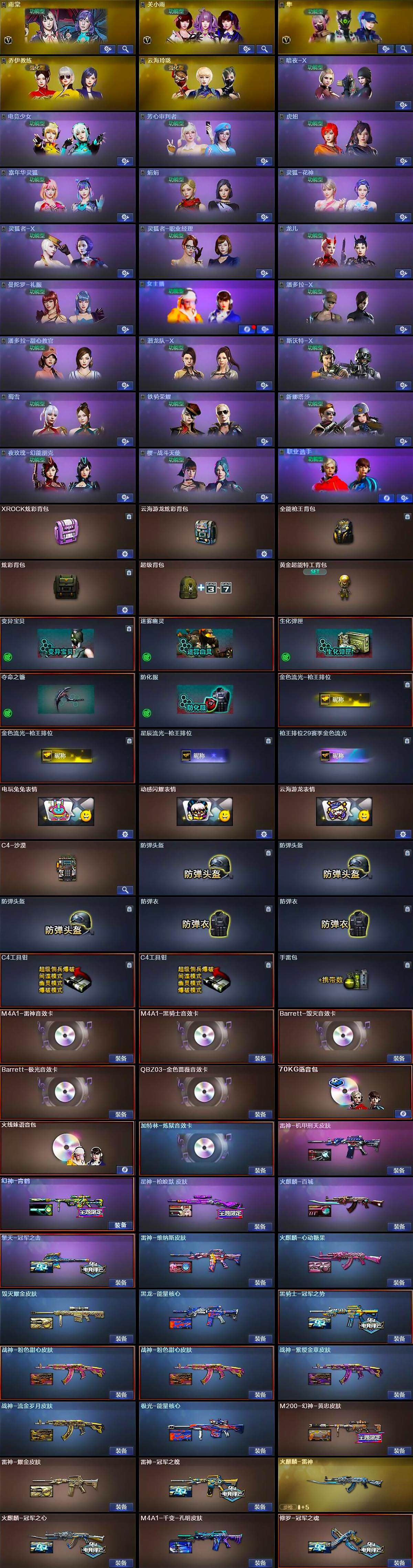 【皮肤】:M200-幻神-黄忠皮肤,幻神-青鹤,星神-枪娘默 皮肤,雷神-耀金皮肤,雷神-冠军之魄,雷神-机甲刑天皮肤,雷神-维纳斯皮肤,火麒麟-雷神,火麒麟-冠军之心,火麒麟-百城,火麒麟-心动糖果,毁灭耀金皮肤,M4A1-千变-孔明皮肤,黑龙-能量核心,黑骑士-冠军之势,战神-粉色甜心皮肤*2,战神-紫绶金章皮肤,战神-流金岁月皮肤,极光-能量核心,修罗-冠军之魂,擎天-冠军之击