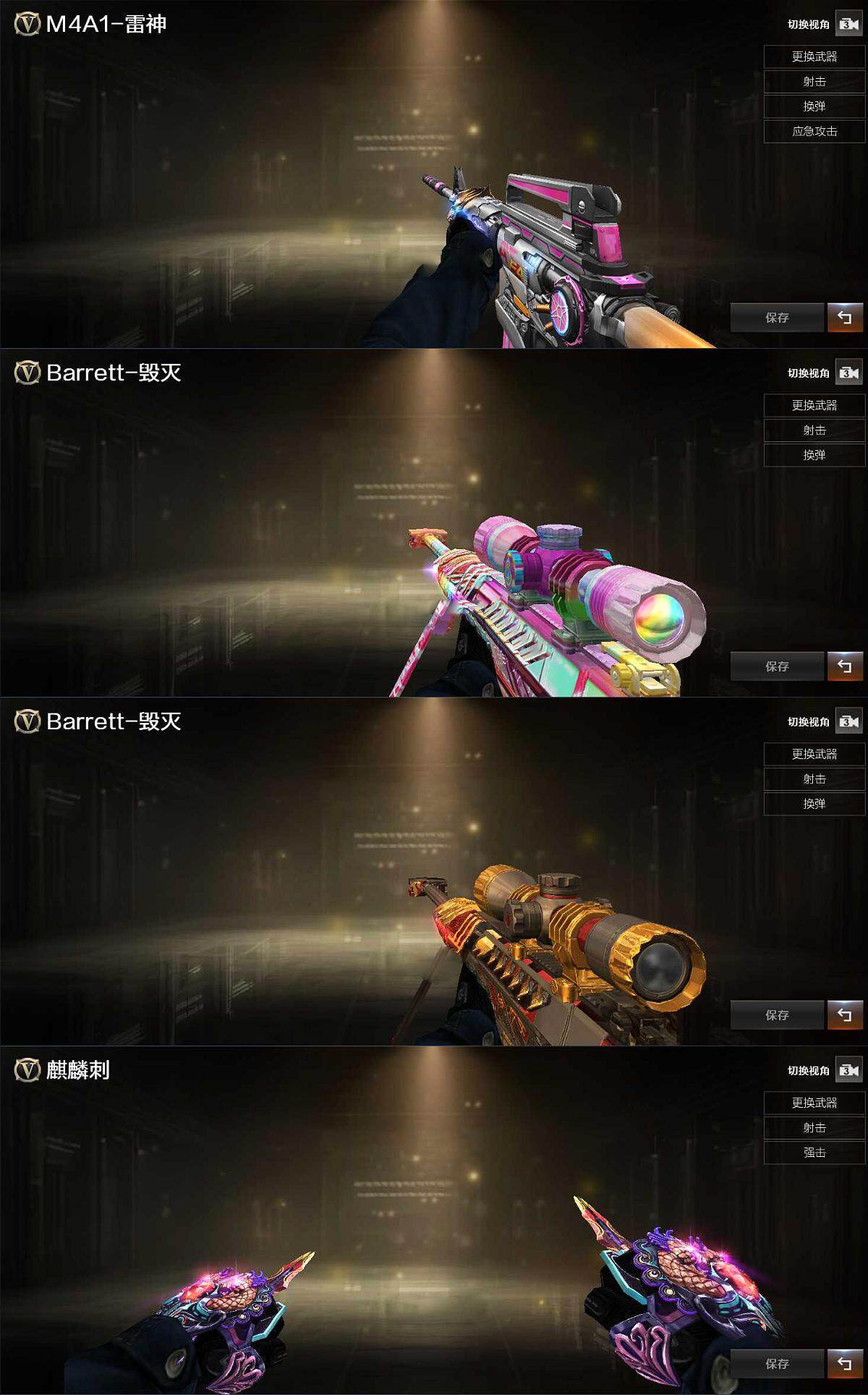 【英雄级武器】:AK47-火麒麟,M4A1-雷神,QBZ03-金色蔷薇,Barrett-毁灭,王者森决-觉醒版,沙鹰-天神*2,修罗-古蛇迷踪,屠龙,麒麟刺,擎天-竞技荣光,高爆手雷-竞技荣光*2,高爆手雷-古蛇迷踪,闪光弹-竞技荣光*4,烟雾弹-竞技荣光*3,烟雾弹-古蛇迷踪,M4A1-苍鸣雷神,Barrett-碧霄极光