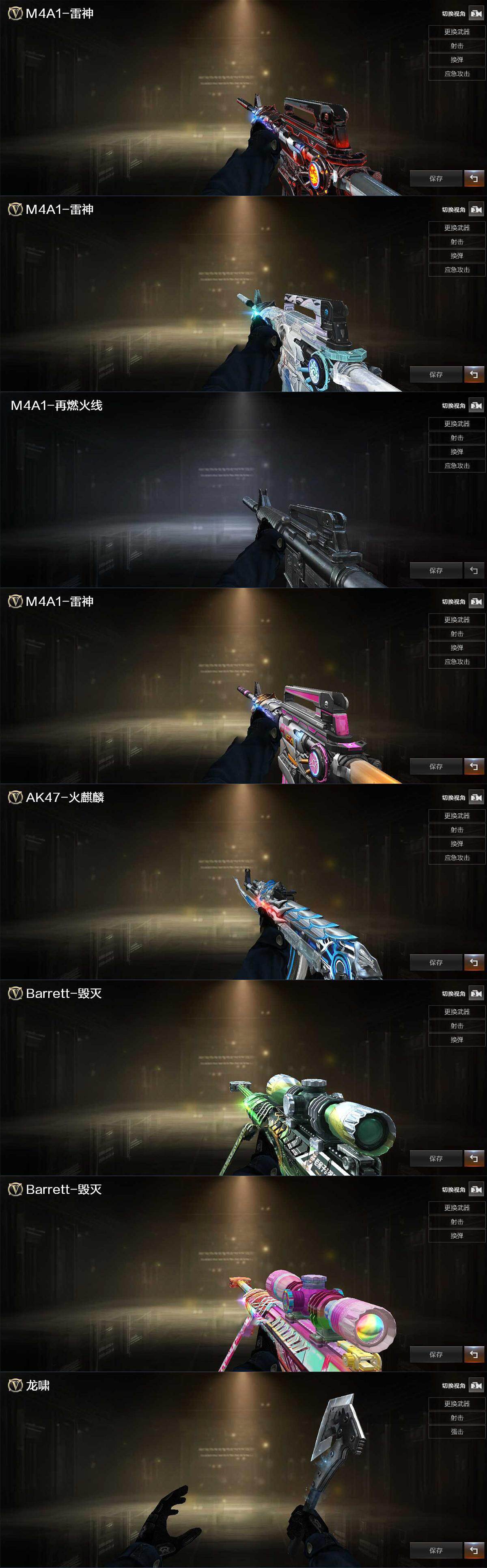【皮肤】:雷神-暗月,雷神-化蛇 皮肤,M4A1-再燃火线,雷神-神秘按键 皮肤,火麒麟-雷神,毁灭-百城浙江 皮肤,毁灭-虹光风暴 皮肤,轻型军用手斧-再燃火线