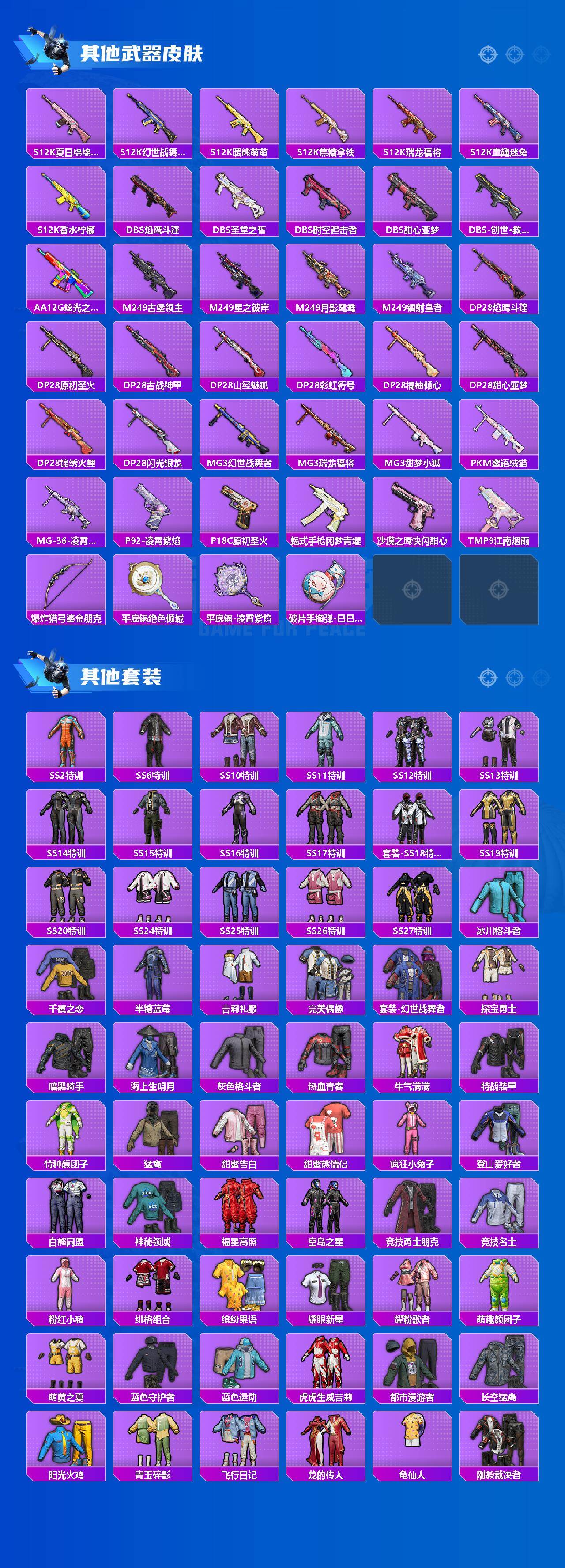 [14306902]安卓 手Q-16粉装-11特效枪-4载具-4粉色飞行器-78241热力值-5王牌印记-152套装-228枪皮 【热门品类】:套装-龟仙人,套装-浪漫波比,套装-粉红小猪,角色-Mark.06 【粉色载具】:兰博基尼Aventador SVJ(翡翠绿),阿斯顿马丁DBS(绿),灵鼠银迹,萌喵橘座 【粉色套装】:粉装-星空之魅,粉装-潮汐统领,粉装-苍蓝魅影,粉装-冰霜白皇,粉装-香水柠檬,粉装-星之彼岸,粉装-馨动时刻,粉装-炙焰赤龙,粉装-飓风飞鹰,粉装-蜜桃特工,粉装-暗夜玫瑰,粉装-霞光圣骑,粉装-寒光使者,粉装-蜜语绒猫,粉装-鎏金朋克,角色-萨利娅 【粉色枪皮等级】:AKM-梦之光华(五级),SCAR-L-锦绣绵绵(五级),M416-心之恋语(一级),M416-暖熊萌萌(六级),GROZA-焦糖拿铁(五级),M762-激战未来(五级),Kar98K-圣光天使(四级),Kar98K-巳巳如意(三级),DP-28-圣堂之誓(五级),DP-28-豹影疾电(三级),MG3-炙焰牛王(六级) 【粉色枪皮】:AKM-梦之光华,SCAR-L-锦绣绵绵,M416-心之恋语,M416-暖熊萌萌,GROZA-焦糖拿铁,M762-激战未来,Kar98K-圣光天使,Kar98K-巳巳如意,DP-28-圣堂之誓,DP-28-豹影疾电,MG3-炙焰牛王 【粉色飞行器】:激战未来飞行器,天之羽翼飞行器,绝色倾城飞行器 【粉色降落伞】:繁花小夜曲降落伞,心之恋语降落伞,潮汐统领降落伞,锦绣火鲤降落伞,夏日绵绵冰降落伞,香水柠檬降落伞,王牌四分卫降落伞,星之彼岸降落伞,怪笑疯兔降落伞,梦之光华降落伞,烈焰拳霸降落伞,绿意幻情降落伞,碧影闪光降落伞,橘柚倾心降落伞,炙焰牛王降落伞,星夜魔法师降落伞,圣光天使降落伞,妙趣可丽降落伞,仲夏莫吉托降落伞,白勺歌姬降落伞,萌物绒绒降落伞,镜域双华降落伞,辉耀战甲降落伞,创世·救赎降落伞 【稀有套装】:套装-龟仙人,套装-朱霞炽焰,套装-凌霄紫焰 【稀有枪皮】:AKM-夜灯,AKM-奇异狩猎者,AKM-星之彼岸,AKM-灼热熔岩,AKM-玉龙,AKM-萌趣颜团子,AKM-虎虎生威,AKM-锦绣火鲤,AKM-霓虹街区,AKM-龙的传人,M16A4-夜灯,M16A4-幻世战舞者,M16A4-甜心亚梦,SCAR-L-未来战士,SCAR-L-炫彩节奏,SCAR