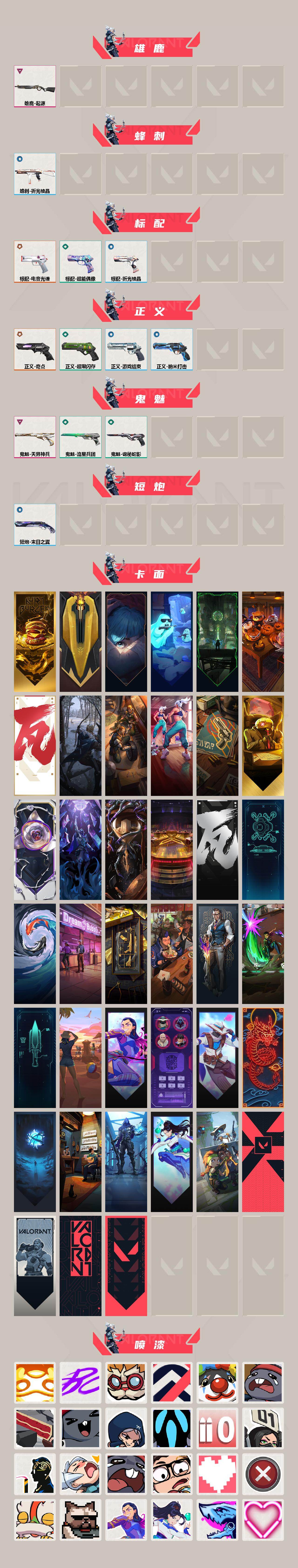 【卡面】:终章:激斗汉堡 卡面,进入射程 卡面,《双城之战》拥抱 卡面,精灵大战 卡面,欢迎来到底城 卡面,南瓜盛典 卡面,VCT CN首冠 卡面,钢弓与箭弦 卡面,修车达人 卡面,热舞环节 卡面,正义的化身 卡面,终章:生意人麦宝 卡面,铁之华 卡面,失而复得 卡面,时间到 卡面,最高舞台 卡面,先瓦为敬 - 银色 卡面,声感陷阱设计图 卡面,红鳞松叶 卡面,梦幻奶茶 卡面,终章:打造专属狂徒 卡面,趁热吃 卡面,无畏契约:尚勃勒 卡面,源能反应 卡面,零点嗅探设计图 卡面,沙雕爆能器 卡面,无畏契约GO!第一卷:芮娜 卡面,清除名单 卡面,无畏契约GO!第一卷:零 卡面,龍记 卡面,无垠星环 卡面,完美调谐 卡面 ,暗枪 卡面,无畏契约GO!第一卷:贤者 卡面,别冒尖 卡面,代号红色 卡面,新兵报到 卡面,V契约 卡面,无畏契约 卡面