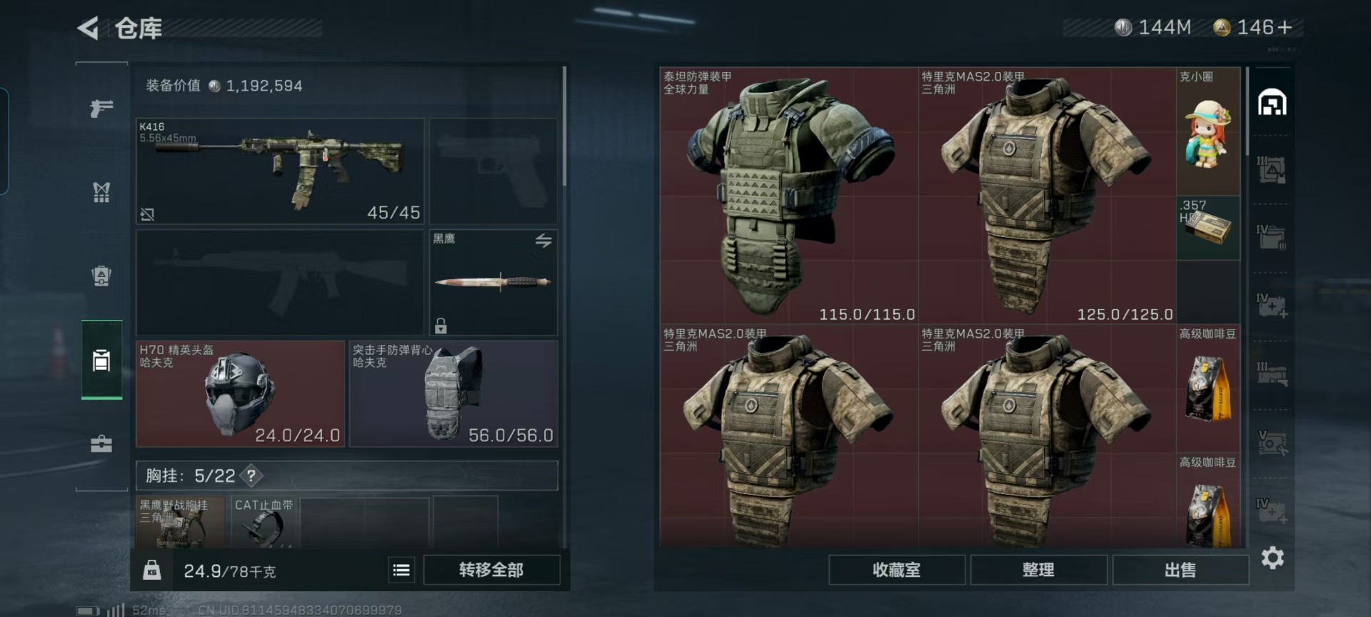 [12031409]总资产:450M 2干员外观 13传说枪械 哈夫币:144K 可二次 可修改实名
