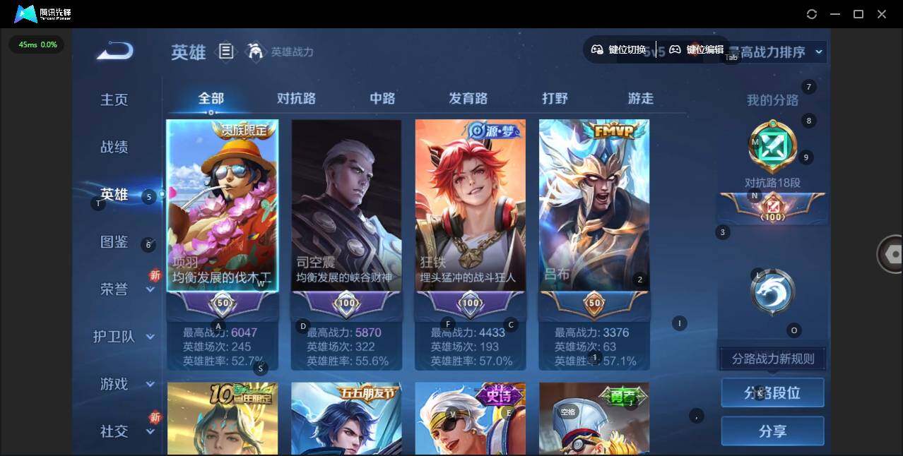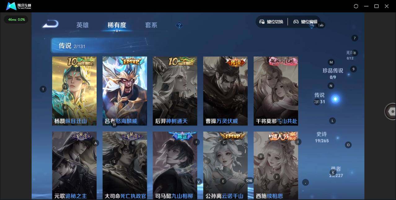 - [11651928]V7 1典藏 11传说 123英雄 188皮肤 可修改实名 优质装备:鸣剑·曳影,云鹰飞将(小将军),炽阳神光,一念神魔,无双飞将,碎云,山海·炽霜斩(李信年限),记忆之芯(机甲兔),澜逐花归海,涂山容容 传说皮:幻光神枪 珍宝阁皮:胡桃夹子,玩趣恶龙 限定皮:愿照·山河定(司空震年限),逐霄战戟,鸣野蒿,五谷丰年,李小龙,朱雀志(守约年限),时之祈愿-云中君,山海·玄木吟(马可年限) 史诗皮:星界战将,龙之律动,茶境仙,百相守梦-黄忠,黄金分割率,特工魅影,江河有灵,鹤归松栖(赵怀真),魅语,蒙恬荣光圣徽,电玩·爆裂旋风,暗夜猫娘,龙骑士(小龙虾),末日机甲-吕布,乱世虎臣,修罗,摇滚巨星,水果甜心,绅士熊喵,天才门将,星夜王子,德古拉伯爵,暗隐猎兽者,幽灵船长,鬼剑武藏,舞动绿茵,地狱岩魂,缤纷独角兽,乘风破浪,逐浪之夏,水晶猎龙者,曙光守护者,金属风暴,原初追逐者,圣诞狂欢,圣诞恋歌,鹰眼统帅,魅力维加斯,无心,未来纪元-赵云