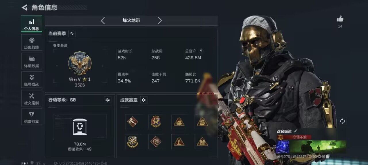 [14330674],【店主推荐捡漏号!可直接换绑】25011k哈伏币-356m流动资产-60烽火等级-钻石-28战场等级-上等兵