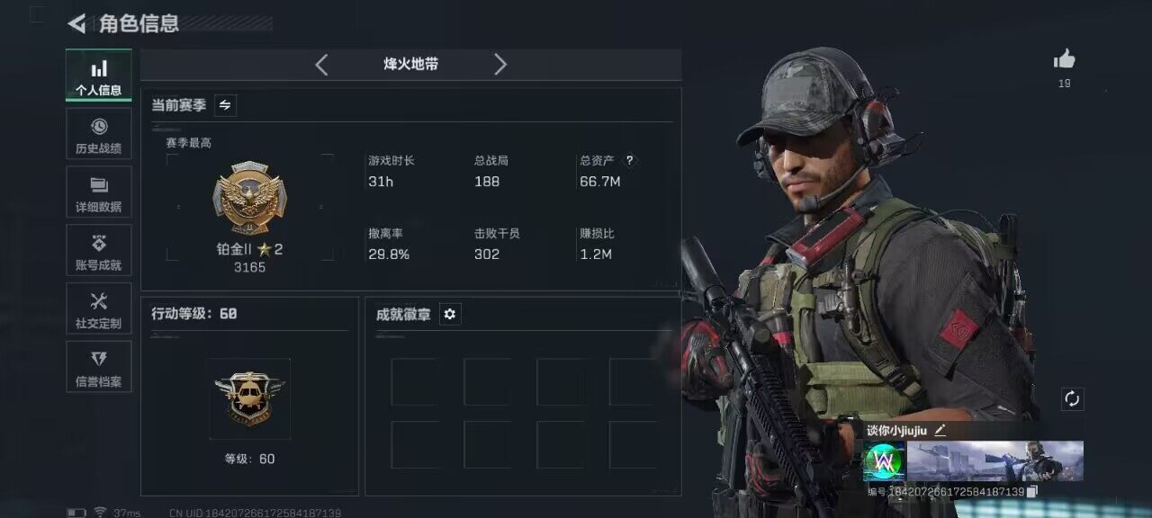 [14330827]【店主推荐捡漏号!可直接换绑】14661k哈伏币-58m流动资产-60烽火等级-铂金-16战场等级-上等兵