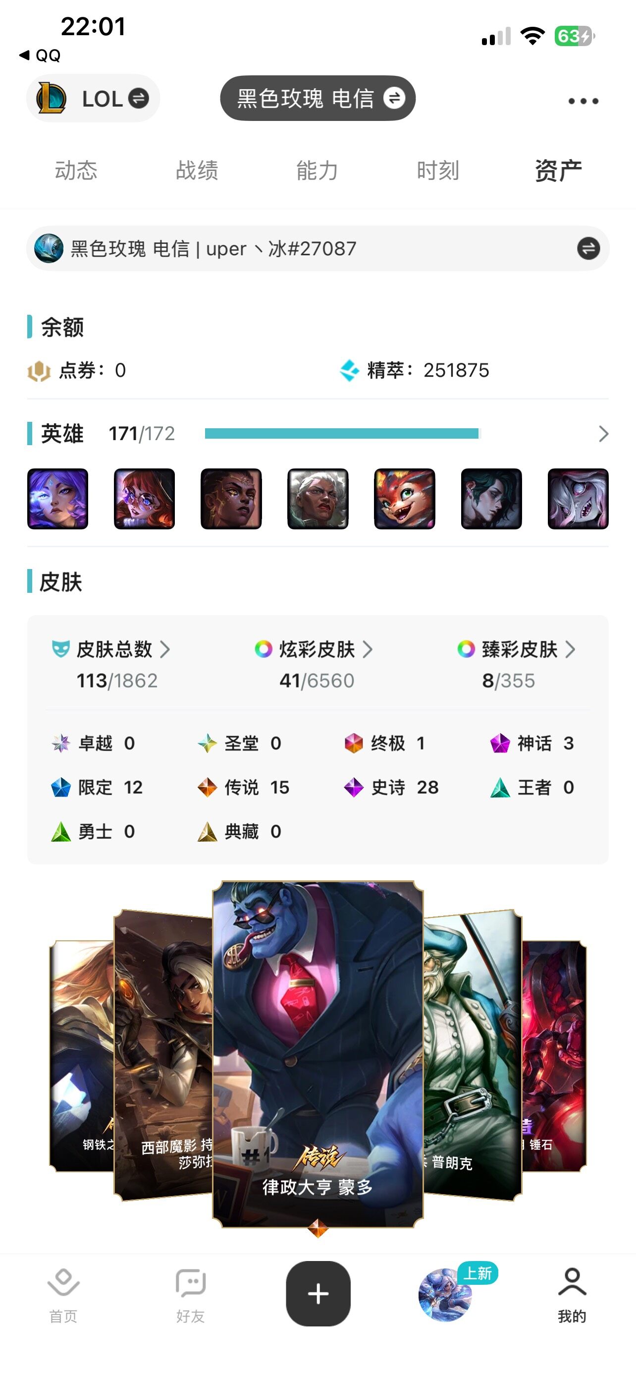 [14330790]可二次【店主推荐捡漏号!可直接换绑】白银段位-171英雄-113皮肤-41炫彩-1终极-3神话-12限定-15传说-28史诗