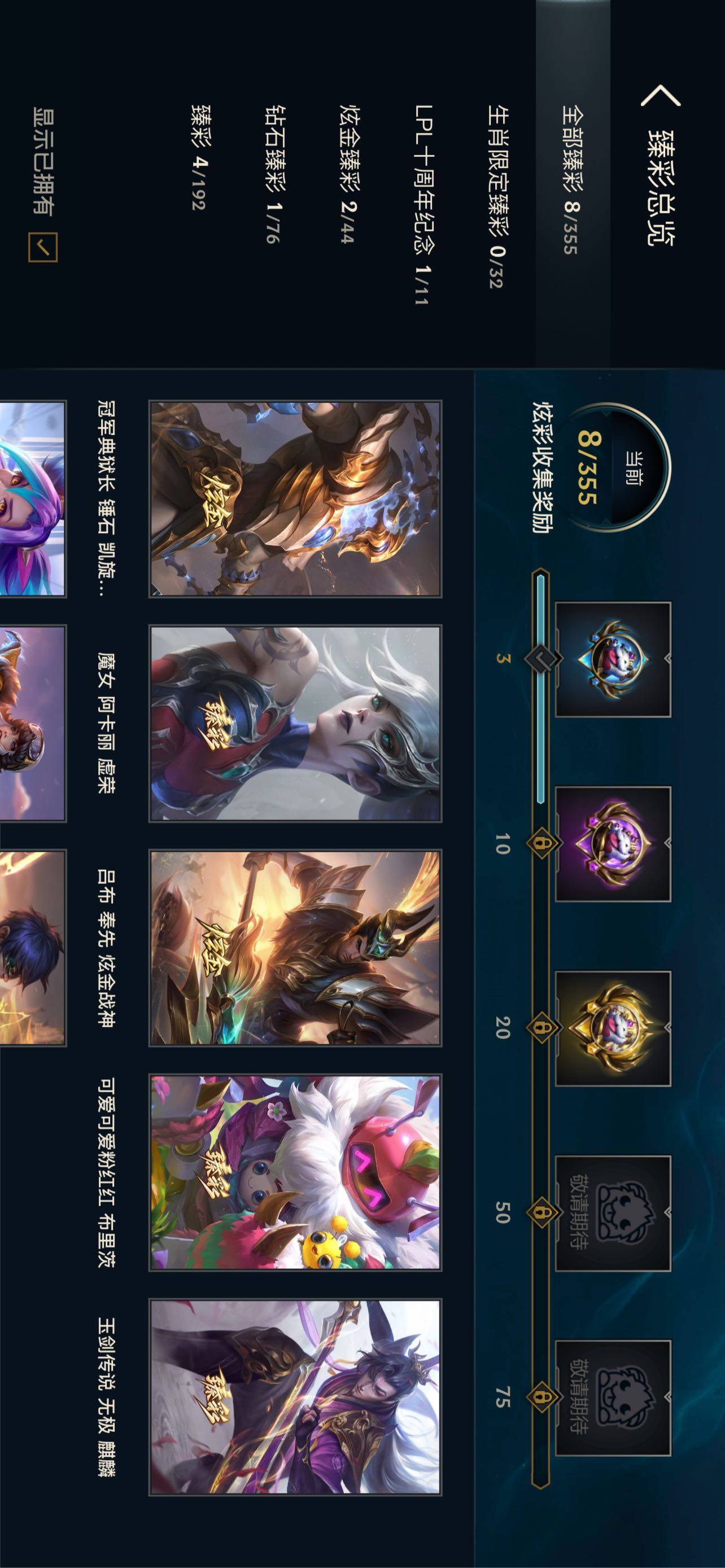 【臻彩皮肤】:无畏骑士瑟庄妮赤子初心,吕布奉先炫金战神,冠军典狱长锤石凯旋圣装,神龙尊者圣龙李青龙腾云起,玉剑传说无极麒麟,星之守护者金克丝黑洞,可爱可爱粉红红布里茨,魔女阿卡丽虚荣