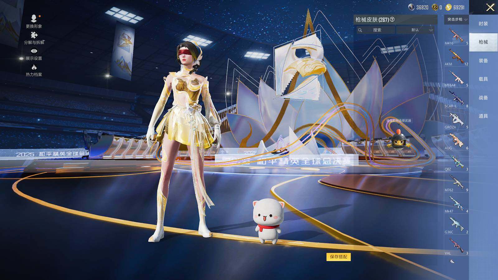 AKM-甜心宝贝,SCAR-L-青春物语,M416-心之恋语,AUG-暖羊咩咩,Kar98K-巳巳如意,AMR-炫光之旅,MK12-雪月幻音,MG3-洛神天依,爆炸猎弓-雪梅暗香