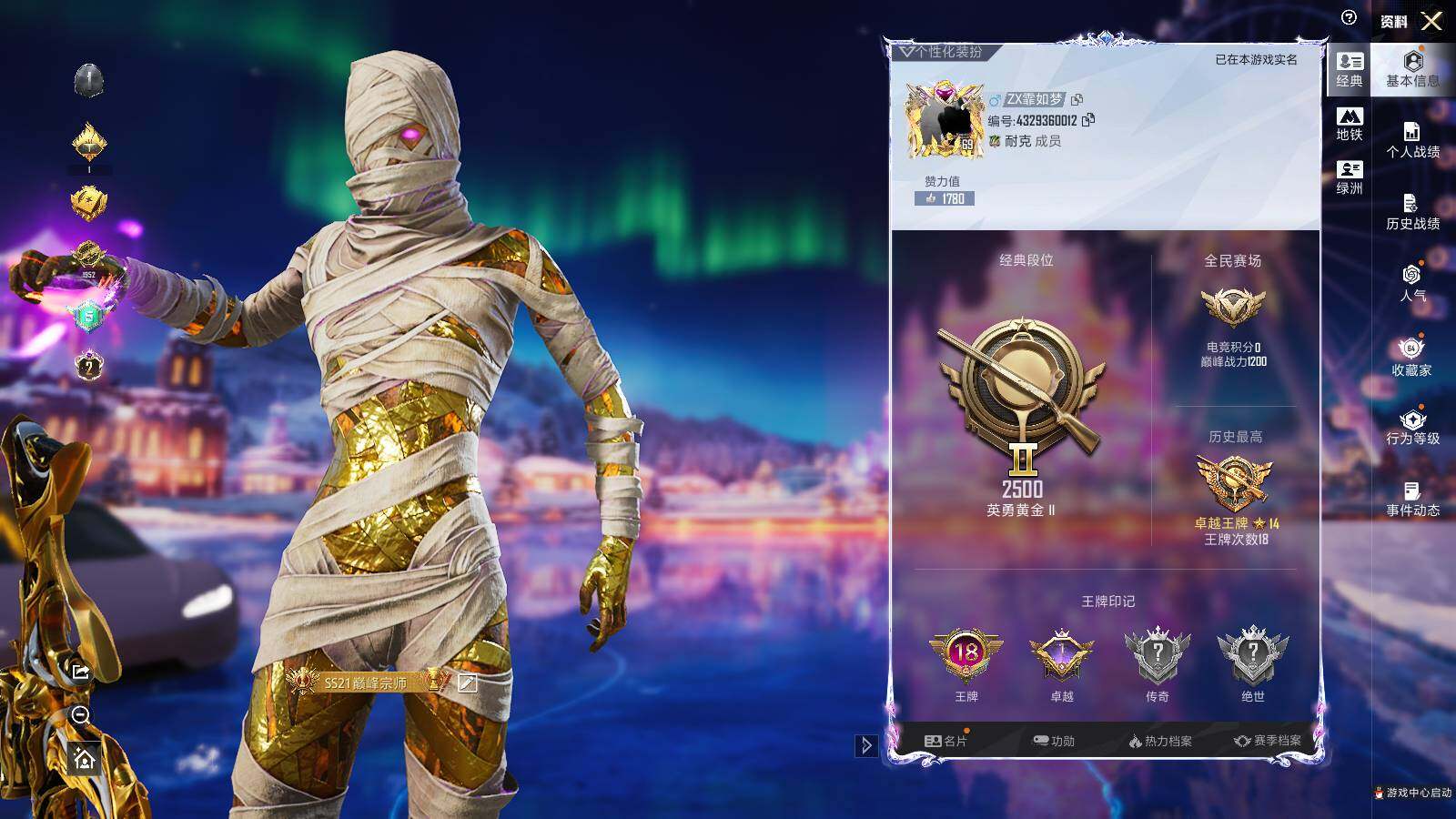 - PX_2095778-四川/西部/可二次可排位/156V12王者7炫金1传说VIP6【主武器类型】 传说灵眸 M200-幻神 (AG冠军+世冠白鲨) Kar98K-星神 (漫游+破竹) USP雷暴/USP-神工天巧/COP-雷霆/COP白鲨/COP-幻灵 蝴蝶刀-炽芒蝶刃 王者芳薇觉醒版 6盘龙+炼狱小刚 6烈龙+蝴蝶 白虎之魄觉醒版 Scar-白虎 (虎啸+大汉风骨) M14EBR-玄武 王者