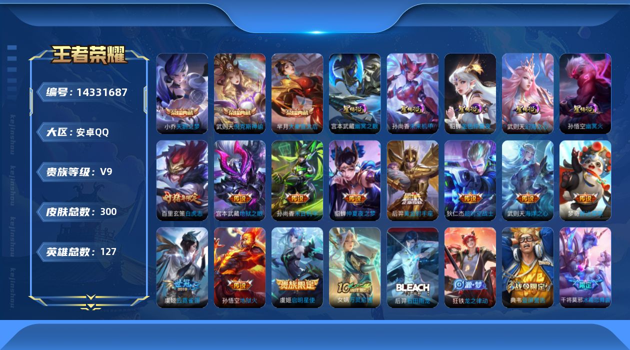 [14331687]安卓Q-V9-300皮肤-3典藏皮肤-1典藏英雄-12传说-78史诗