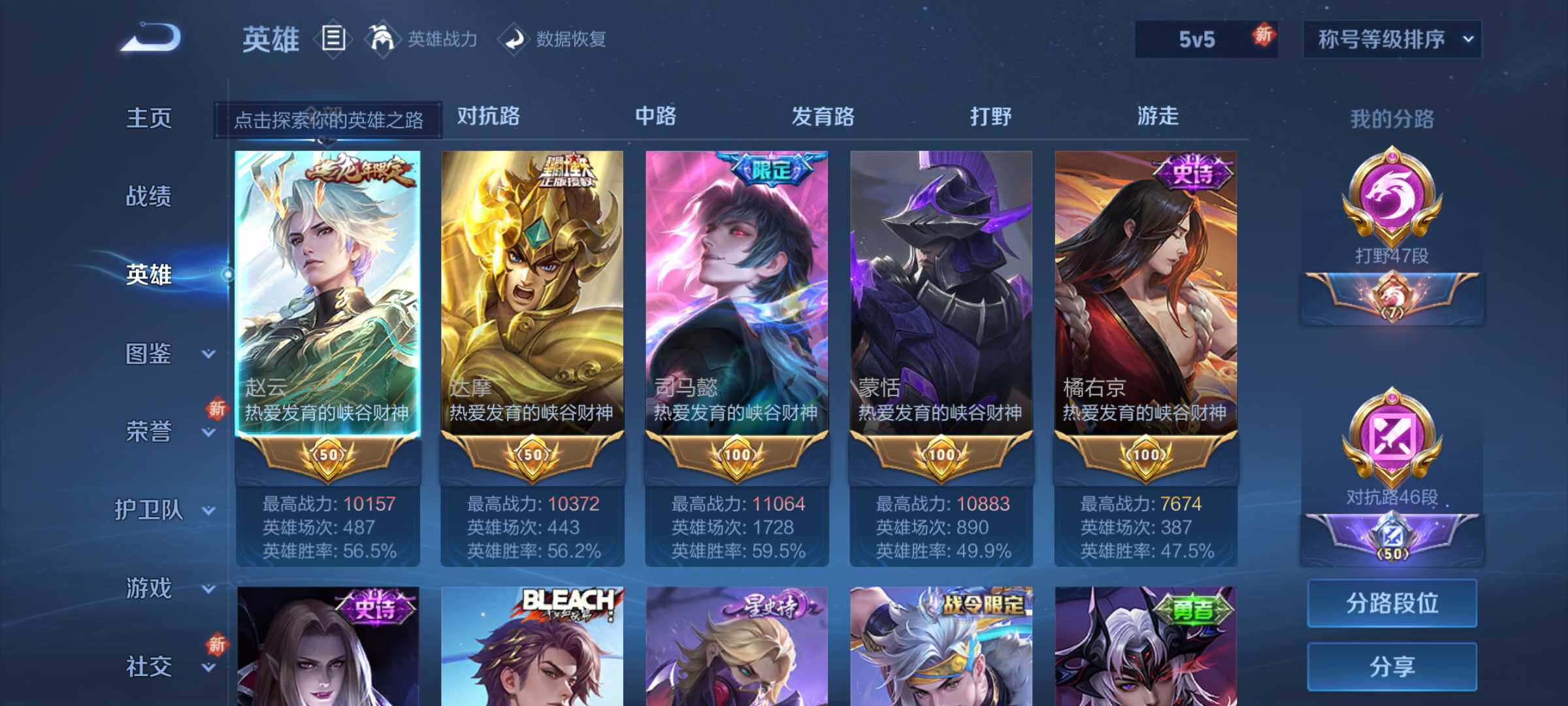 [14340819]可二次【店主推荐捡漏号!可直接换绑】万战赵云、万战达摩、万战蒙恬、1.1w司马懿,打野47段、对抗路46段,安卓Q-V7-最强王者段位-125英雄-253皮肤-1典藏皮肤-1星传说-8传说-67史诗