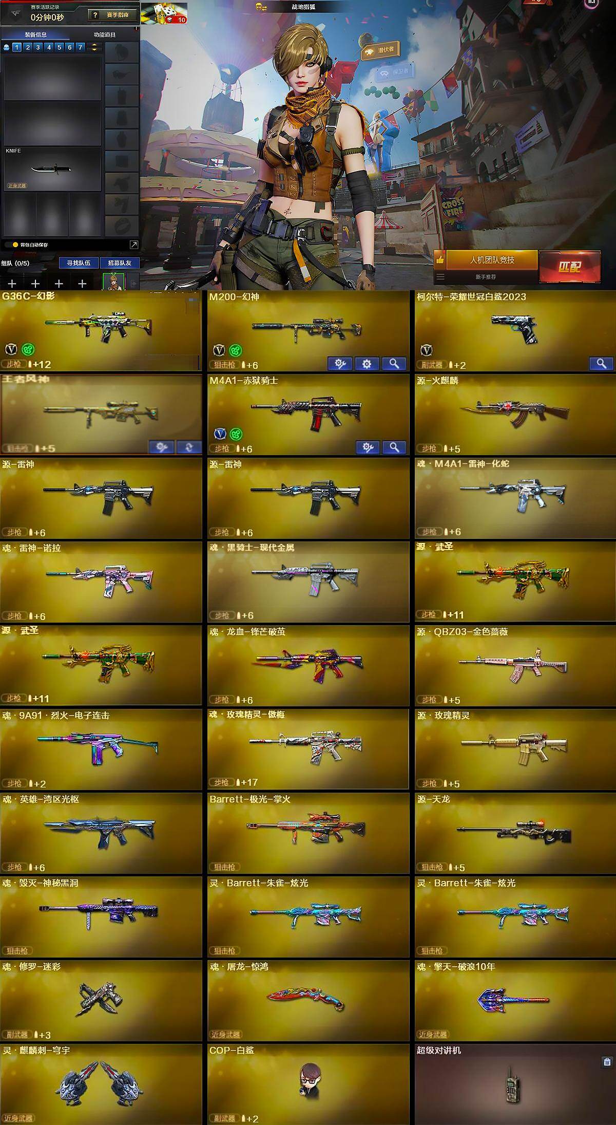 - [12615485]广东二区-34V-2王者-0炫金 【传说角色】:传说艾莉莎 【热门武器】:QBZ03-金色蔷薇,M200-幻神,白虎-电玩蓝兔,牛牛-AK47,加特林-炼狱,COP-白鲨,沙鹰-修罗*3 【音效卡】:M200-幻神音效卡 【稀有皮肤】:幻神-荣耀世冠白鲨2023 皮肤,雷神-宠儿-2019MVP,火麒麟-平天大圣,火麒麟-心动糖果,毁灭-荣耀之怒,屠龙-荣耀之锋*2 【角色】:传说艾莉莎,零,隼,战地猎狐,铁骑荣耀,青霞仙子 【人偶武器】:COP-白鲨,AWM-灵狐-15周年嘉年华,牛牛-AK47,迷你超能女侍,迷你裂空之翼 【挑战大师】:冰龙粉碎者-白马银枪 【英雄级武器】:M4A1-武圣,Glock18-武圣,QBZ03-金色蔷薇,白虎-电玩蓝兔,无影-神兵利器,M4A1-雷神,加特林-炼狱,AK47-火麒麟*2,AWM-天龙,Barrett-毁灭,AWM-裁决,M200-幻神,黑武士-锦绣游龙,死神-雪域霜狐,AK-47-猩红传说*2,AK47-B-战神,M4A1-赤狱骑士,沙鹰-修罗*3,屠龙*3 【特殊枪械】:1炼狱