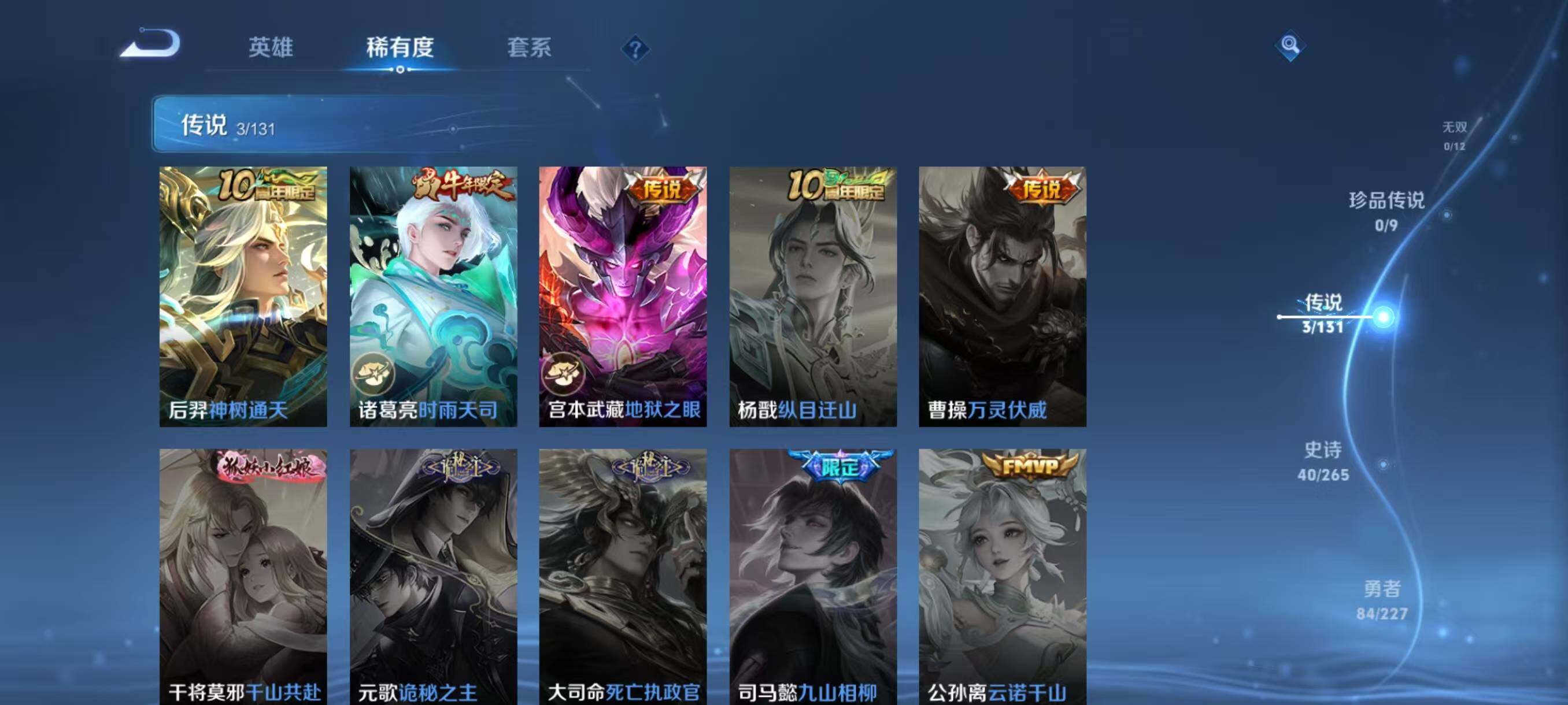 【传说皮肤】:后羿神树通天,诸葛亮时雨天司,宫本武藏地狱之眼