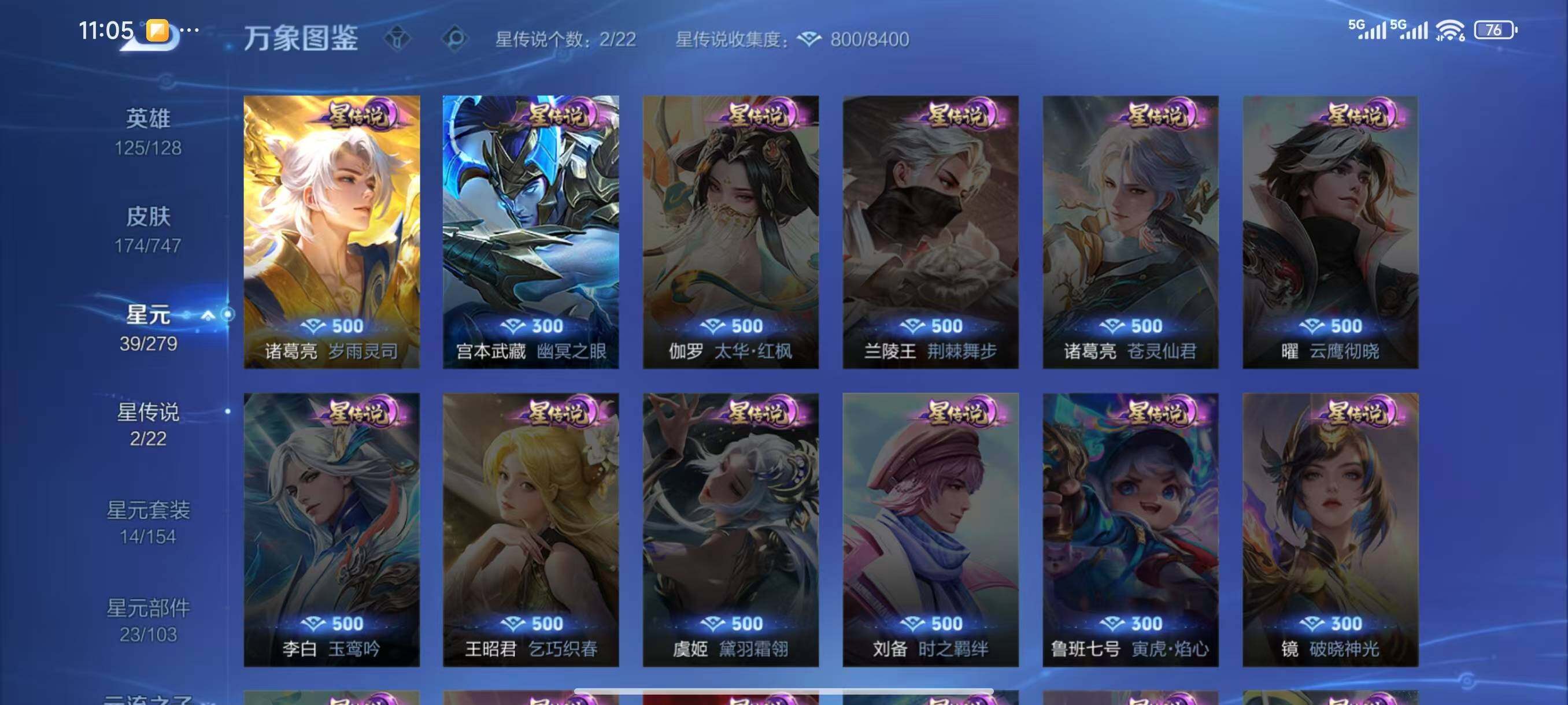 - [14231788]【店主推荐捡漏号!可直接换绑】安卓Q-V8-最强王者段位-127英雄-320皮肤-1典藏皮肤-17传说-94史诗 【英雄全皮】:猪八戒全皮,影全皮 【荣耀典藏】:鲁班七号星空梦想 【传说皮肤】:后羿神树通天,桑启鸣野蒿,孙策乘龙淬吴钩,赵云乘龙铭钟鼎,马超无双飞将,诸葛亮时雨天司,铠绛天战甲,镜炽阳神光,虞姬启明星使,孙悟空零号赤焰,曜云鹰飞将,李信一念神魔,达摩黄金狮子座,百里玄策白虎志,花木兰冠军飞将,杨戬永曜之星,宫本武藏地狱之眼 【限定皮肤】:白起狰,暃埋骨钱,大乔绒语心约,姜子牙天穹之誓,狄仁杰阴阳师,虞姬凯尔特女王,赵云皇家上将,赵云龙胆,墨子神迹守卫,嬴政白昼王子,孙尚香蔷薇恋人,鲁班七号狮舞东方,庄周高山流水,阿轲迷踪丽影,孙膑妖精王,扁鹊炼金王,芈月重明,吕布猎兽之王,吕布御风骁将,周瑜赤莲之焰,元歌云间偶戏,元歌无心,夏侯惇朔风刀,甄姬游园惊梦,曹操烛龙,曹操天狼征服者,典韦穷奇,典韦蓝屏警告,典韦岱宗,马可波罗暗影游猎,狄仁杰魔术师,狄仁杰万华元夜,达摩星际陆战队,达摩沙漠行僧,项羽海滩派对,老夫子醍醐杖,老夫子航海奇遇记,关羽冰锋战神,程咬金演武夺筹,刘邦夺宝奇兵,韩信逐梦之影,韩信飞衡,兰陵王驯魔猎人,兰陵王金庭之子,花木兰青春决赛季,花木兰默契交锋,亚瑟潮玩骑士王,孙悟空美猴王,孙悟空至尊宝,孙悟空零号赤焰,牛魔御旌,后羿圣弓游侠,李元芳银河之约,李元芳云中旅人,虞姬启明星使,钟馗神迹守卫,钟馗驱傩正仪,杨玉环遇见飞天,杨戬永曜之星,女娲朔望之晖,干将莫邪真爱魔法,雅典娜单词大作战,雅典娜黎明之约,蔡文姬繁星吟游,太乙真人饕餮,鬼谷子原初探秘者,诸葛亮时雨天司,苏烈千军破阵,百里玄策白虎志,百里玄策原初追逐者,百里守约朱雀志,弈星混沌棋,梦奇顽趣,沈梦溪星空之诺,沈梦溪大漠名商,明世隐疑决卦,裴擒虎天狼狩猎者,裴擒虎李小龙,裴擒虎擒涛扼浪,狂铁御狮,米莱狄御霄,米莱狄胡桃异想国,云中君纤云弄巧,伽罗天狼溯光者,盾山御銮,猪八戒西部大镖客,猪八戒猪悟能,上官婉儿梁祝,上官婉儿天狼绘梦者,蒙犽狂想玩偶喵,鲁班大师探海日志,桑启海盐诗旅,艾琳女武神,阿古朵江河有灵,张良古海寻踪,裴擒虎梅西,蒙恬荣光圣徽,高渐离燃音魔法,妲己灵卜魔法,鬼谷子天穹祈灯,姬小满妄想食味,孙策乘龙淬吴钩,赵云乘龙铭钟鼎,沈梦溪龙舞盛年,周瑜熔金海岸 【年限皮肤】:百