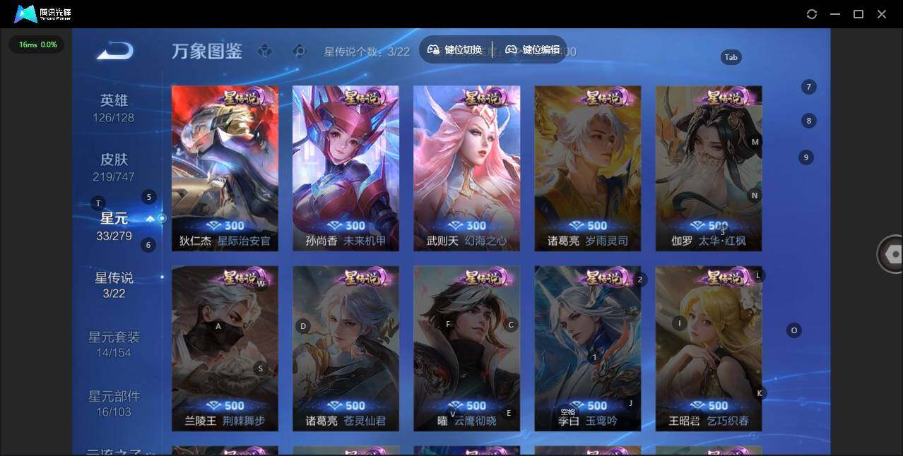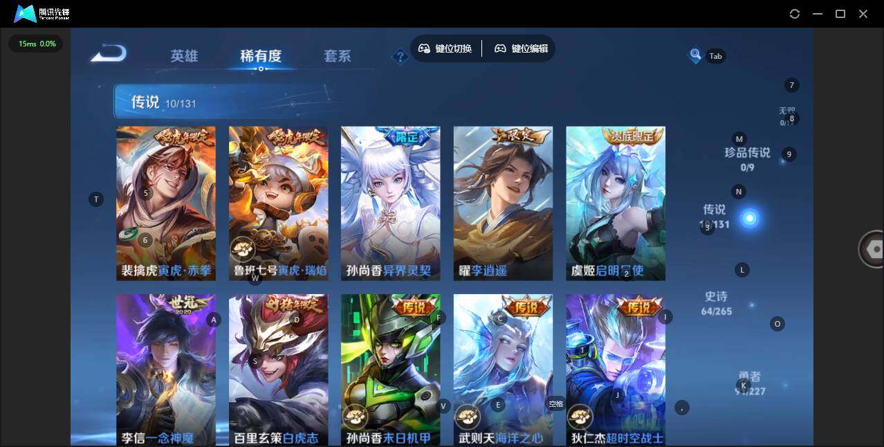 - PX_2094472-40 安卓QQ/至尊星耀/273皮肤/124英雄/1典藏/0珍品无双/0无双/1珍品传说/19传说/84史诗/8稀有英雄 【1 珍品传说】怪盗基德 马可波罗, 【1 典藏皮肤】鸣剑·曳影 李白, 【19 传说皮肤】启明星使 虞姬,云霓雀翎 虞姬,逐花归海 澜,地狱火 孙悟空,霜月吟 露娜,时之恋人 刘备,黄金狮子座 达摩,绯月行 不知火舞,一念神魔 李信,至美·化雀舞 甄姬,