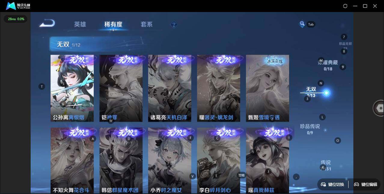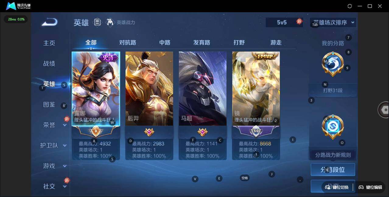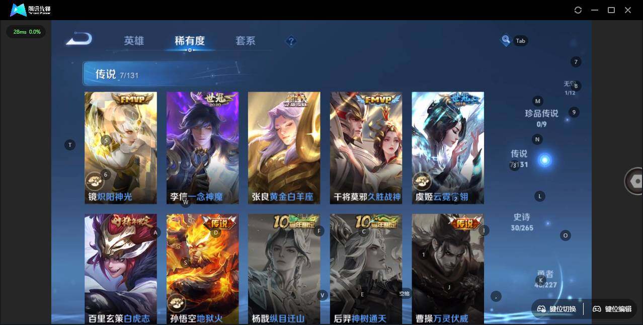 - [11881898]V8 1典藏 22传说 124英雄 248皮肤 可修改实名 优质装备:鸣剑·曳影,黄金狮子座,冠军飞将,云鹰飞将(小将军),猫影幻舞,久胜战神,炽阳神光,一念神魔,时之恋人-刘备(电焊工),超时空战士-狄仁杰,无双飞将,山海·炽霜斩(李信年限),浮生妄,鹤羽星尊,澜逐花归海 传说皮:乘龙·淬吴钩(孙策年限) 珍宝阁皮:万物之道,玩趣恶龙 限定皮:愿照·九州拓(澜年限),鸣野蒿,异界灵契(白毛香),遇见飞天,怒海麟威,五谷丰年,冰锋战神,游园惊梦,梁祝,逐梦之星,逐梦之影,永曜之星,深海之息(深海大菠萝),山海·玄木吟(马可年限) 史诗皮:器灵·浮梦炉,星界战将,龙之律动,幻珠鲛人,蔬乡物语(鲁班七号),百相守梦-黄忠,织梦人,紫霞仙子,特工魅影,千年之狐,江河有灵,魅语,百解令(蒙犽),高渐离燃音魔法,蒙恬荣光圣徽,偶像歌手,晚萤,电玩·爆裂旋风,末日机甲-吕布,猫狗日记-孙策,猫狗日记-大乔,时之恋人-孙尚香,乱世虎臣,节奏热浪,修罗,女仆咖啡,摇滚巨星,水果甜心,绅士熊喵,星夜王子,心灵骇客,功夫厨神,暗隐猎兽者,幽灵船长,鬼剑武藏,暗渊魔法,心灵战警,舞动绿茵,地狱岩魂,纤云弄巧,繁星吟游(呼啦呼啦),缤纷独角兽,乘风破浪,逐浪之夏,月团寄思,水晶猎龙者,热力回旋,金属风暴,原初追逐者,圣诞恋歌,鹰眼统帅,黎明之约,赏金猎手,无心,未来纪元-赵云