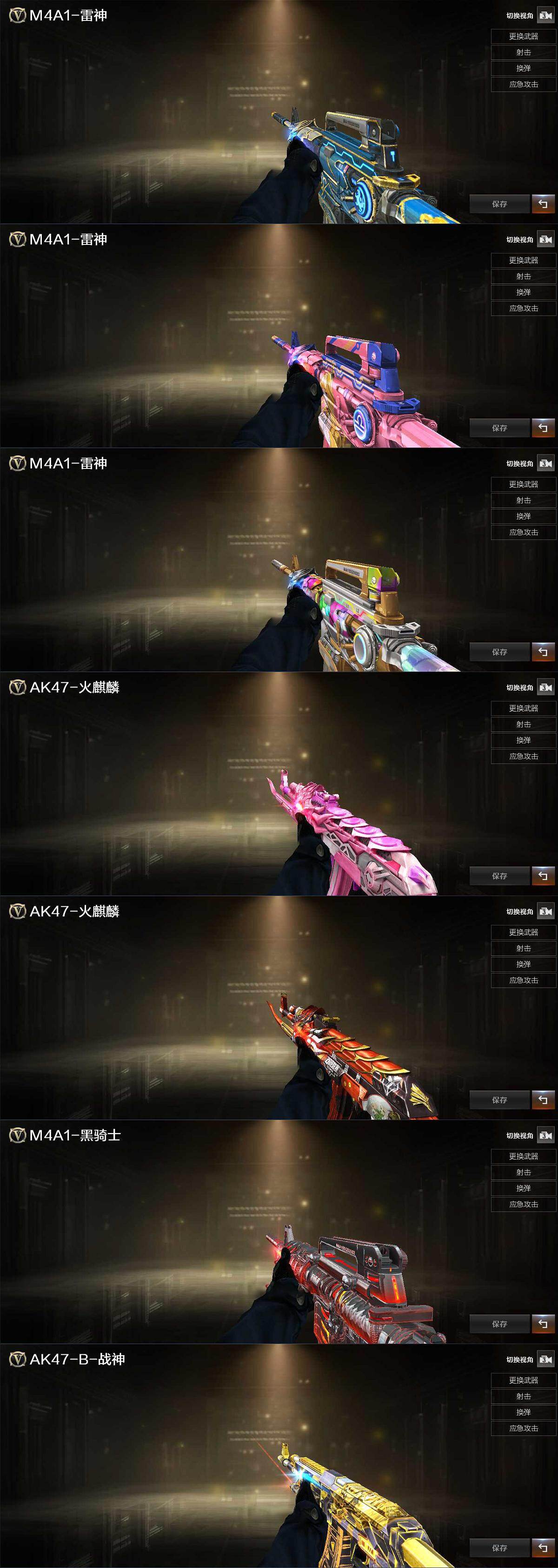 【皮肤】:M4A1-战神赵云,雷神-维纳斯皮肤,雷神-动感闪耀 皮肤,火麒麟-心动糖果,AK47-火麒麟-百城23冠军皮肤,黑骑士-暗月,战神-流金岁月皮肤