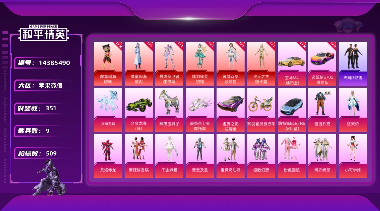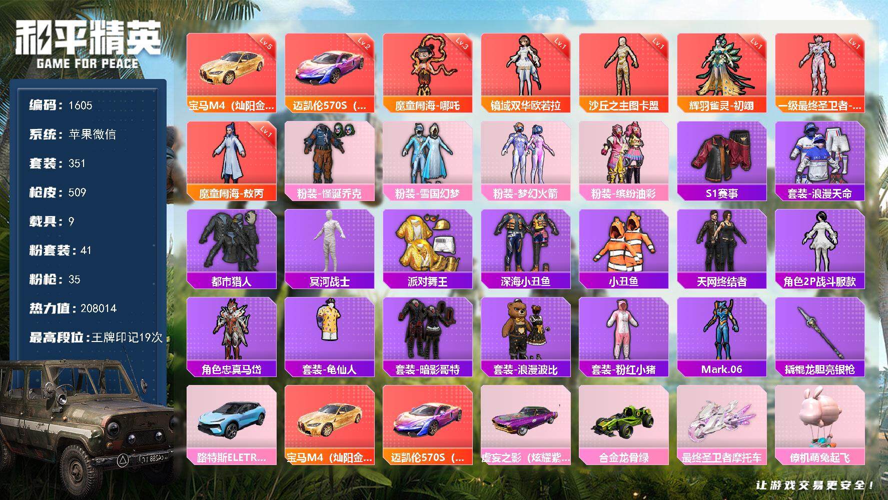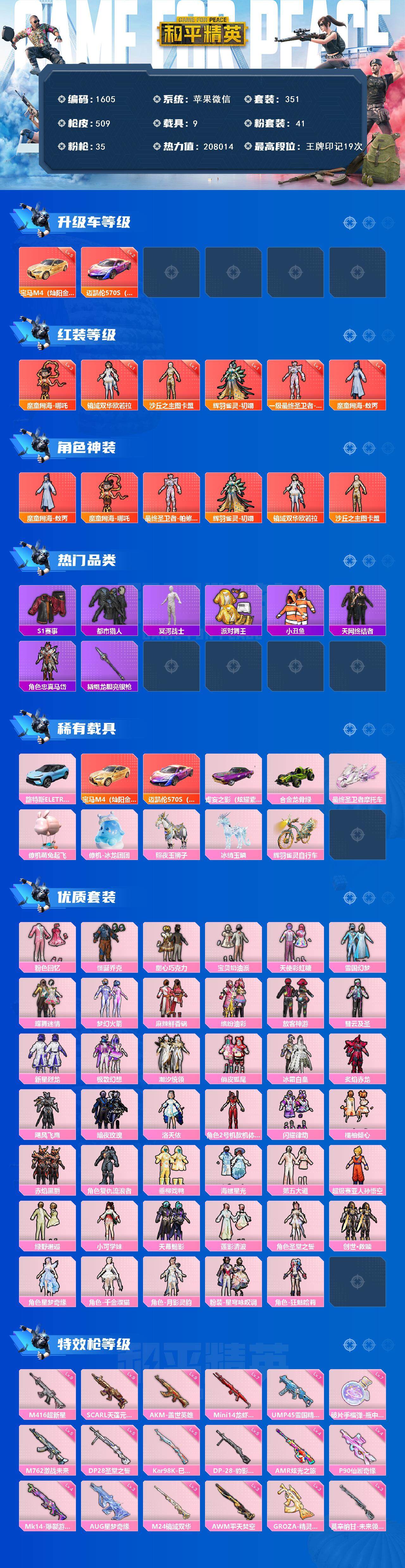 - [15206215]【店主推荐捡漏号!可直接换绑】/素材身法号/M416-至情至圣(九级)/绝世印记3/地铁满天赋 苹果 手Q-4粉装-11特效枪-1载具-3粉色飞行器-5.6w热力值-9王牌印记-113套装-183枪皮【热门品类】:套装-深海小丑鱼,套装-小丑鱼,套装-龟仙人,套装-暗影哥特【粉色载具】:僚机-圣域龙宝【粉色套装】:角色-烟云彩露,粉装-幻彩电音,角色-冷漠罗丽,角色-异瞳寒姬【粉色枪皮等级】:AKM-绿萝繁花(五级),SCAR-L-锦绣绵绵(五级),M416-至情至圣(九级),GROZA-镜光银凌(五级),AUG-暖羊咩咩(五级),P90-冷漠罗丽(七级),Kar98K-巳巳如意(五级),Mk14-甜梦熊击(五级),DP-28-豹影疾电(五级),MG-36-幻彩电音(四级),破片手榴弹-瓶中星球(七级)【粉色飞行器】:星之彼岸飞行器,圣域金龙飞行器