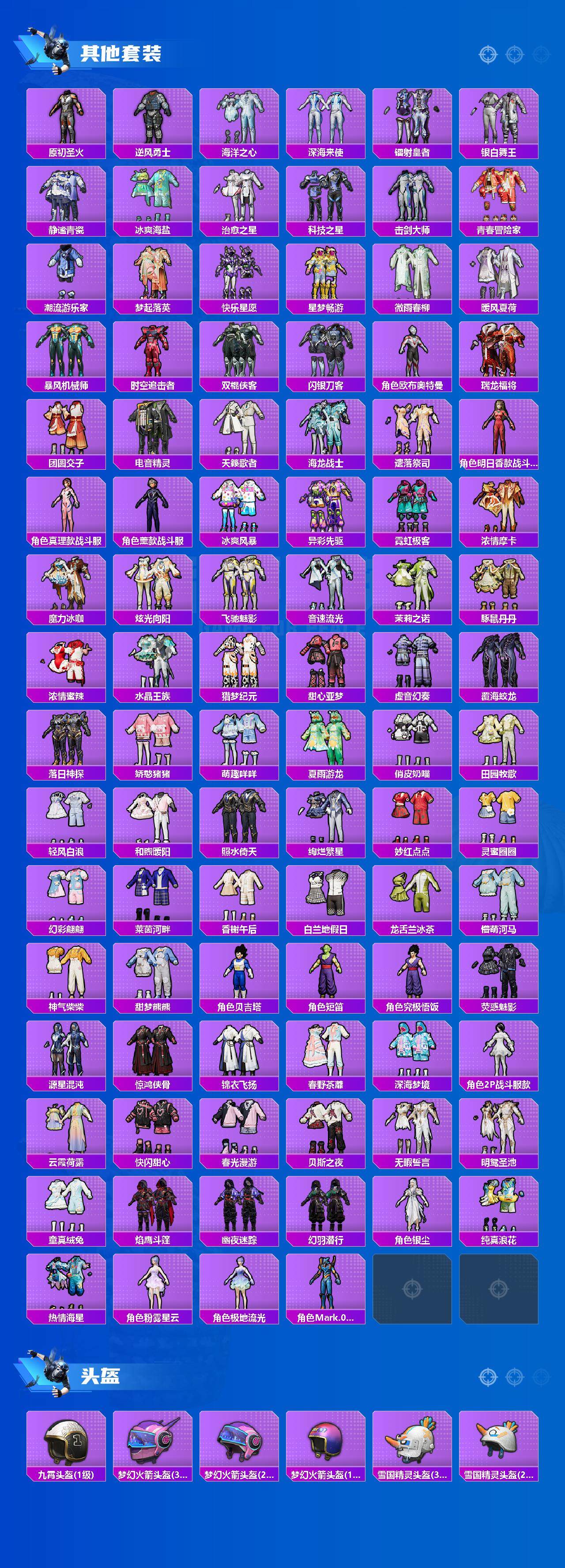 套装-浪漫天命,套装-龟仙人,套装-暗影哥特,套装-粉红小猪,角色-Mark.06,套装-TC追光队服,套装-狂沙舞者,套装-破蛋小黄鸡,套装-漫步者,套装-弄潮海豚,套装-恶魔人蛛,套装-黑色刀锋,新侠客行套装,套装-软嫩糖心蛋,风华少年志套装,海洋之心套装,套装-静谧青瓷,套装-冰爽海盐,套装-梦起落英,套装-瑞龙福将,套装-团圆交子,套装-豚鼠丹丹