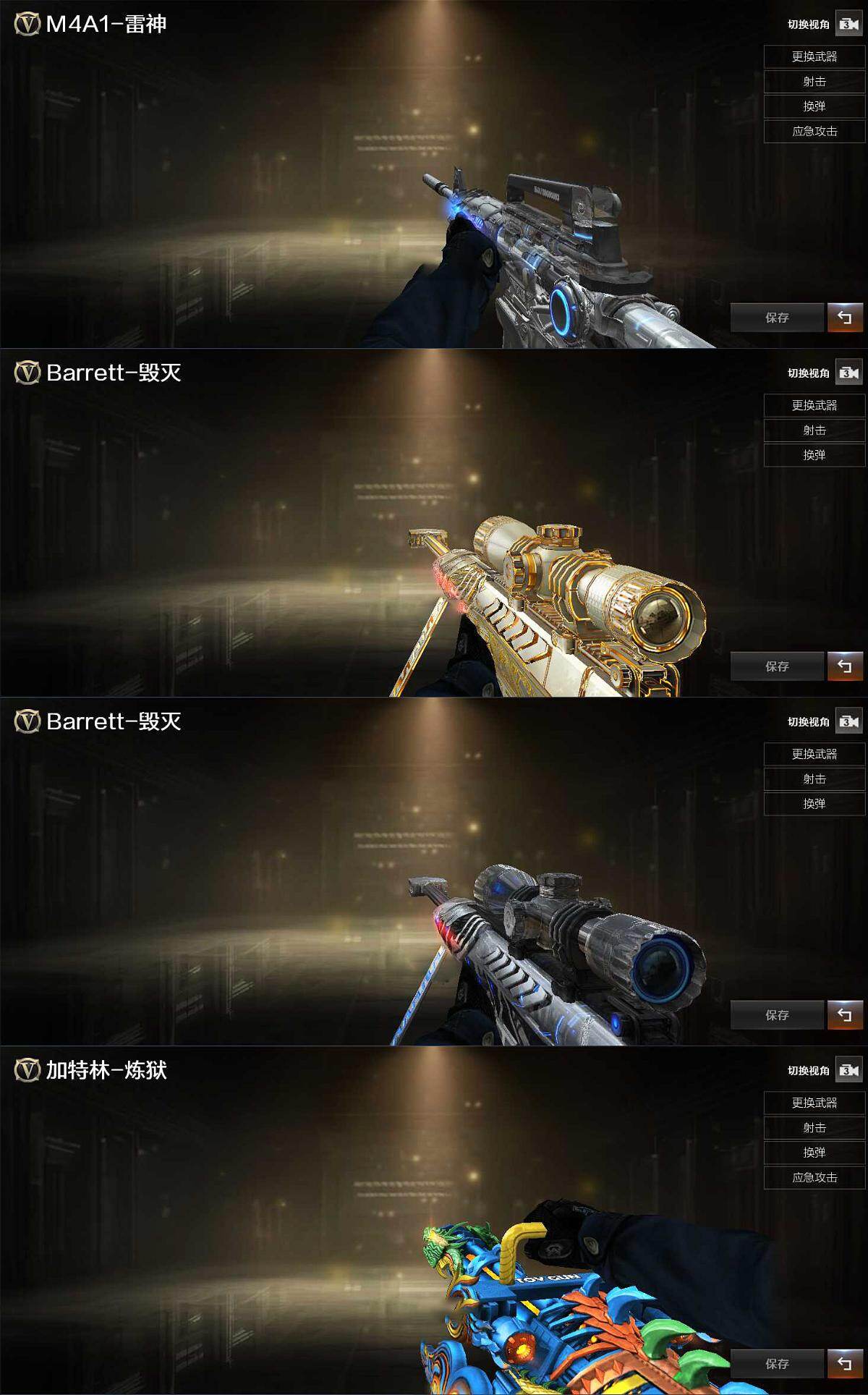 【音效卡】:AK47-火麒麟音效卡,M4A1-雷神音效卡,Barrett-毁灭音效卡