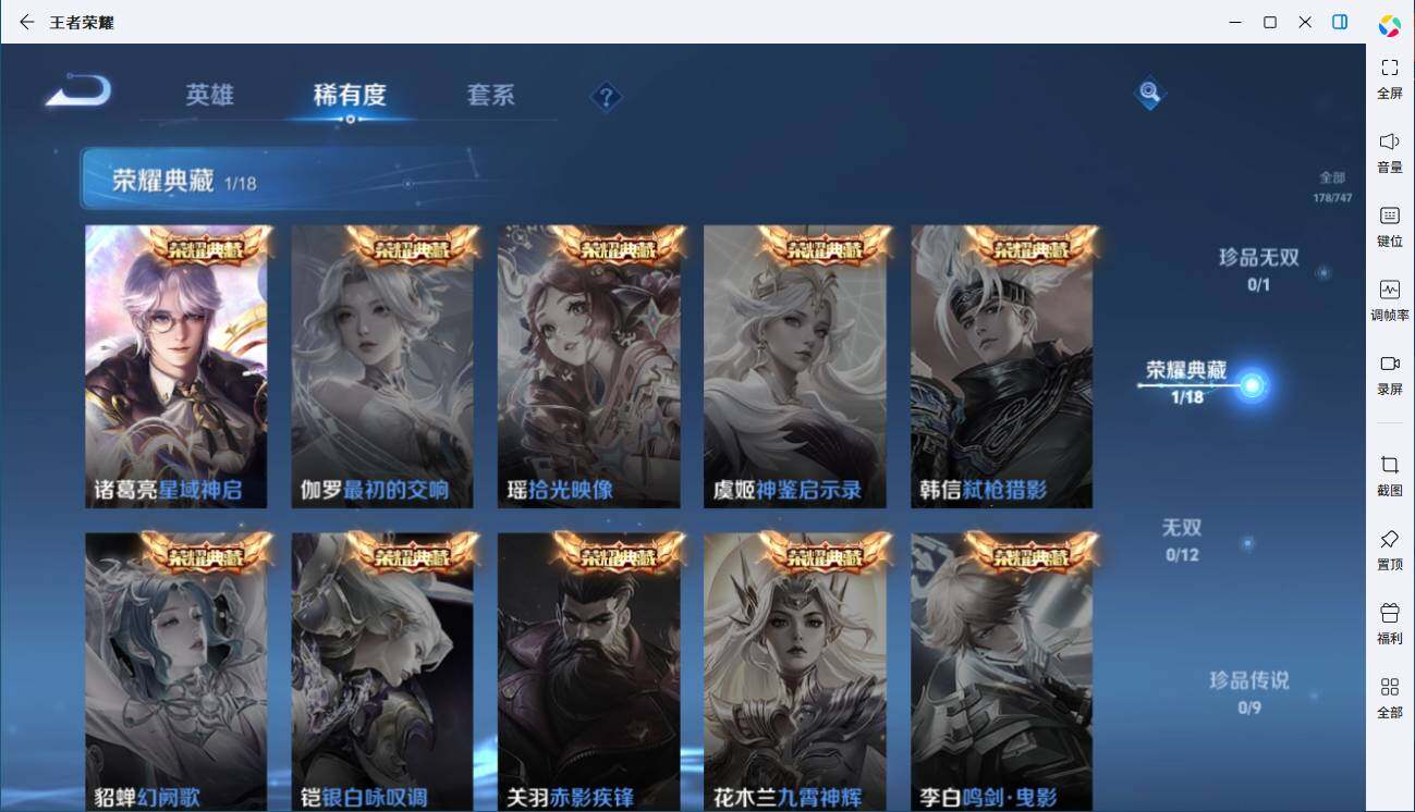 - [11579222]V7 16传说 125英雄 180皮肤 可修改实名 优质装备:黄金狮子座,云鹰飞将(小将军),云霓雀翎,飞鸢探春,时之恋人-刘备(电焊工),惊梅引,遇见神鼓,澜逐花归海,琥珀纪元铠,琥珀纪元马超,黄金天蝎座 传说皮:乘龙·铭钟鼎(赵云年限),典韦战鼓燎原 珍宝阁皮:胡桃夹子,万物之道 限定皮:愿照·山河定(司空震年限),鸣野蒿,诗剑行,岱宗(典韦年限),李小龙,孙行者,山海·玄木吟(马可年限) 史诗皮:器灵·浮梦炉,龙之律动,石田雨龙,蔬乡物语(鲁班七号),琥珀纪元伽罗,百相守梦-黄忠,黄金分割率,匿光侦查者,百解令(蒙犽),高渐离燃音魔法,偶像歌手,猫狗日记-孙策,猫狗日记-大乔,乱世虎臣,节奏热浪,修罗,女仆咖啡,摇滚巨星,水果甜心,绅士熊喵,天才门将,星夜王子,功夫厨神,幽灵船长,鬼剑武藏,暗渊魔法,地狱岩魂,纤云弄巧,拒霜思,缤纷独角兽,乘风破浪,金属风暴,圣诞狂欢,鹰眼统帅,魅力维加斯
