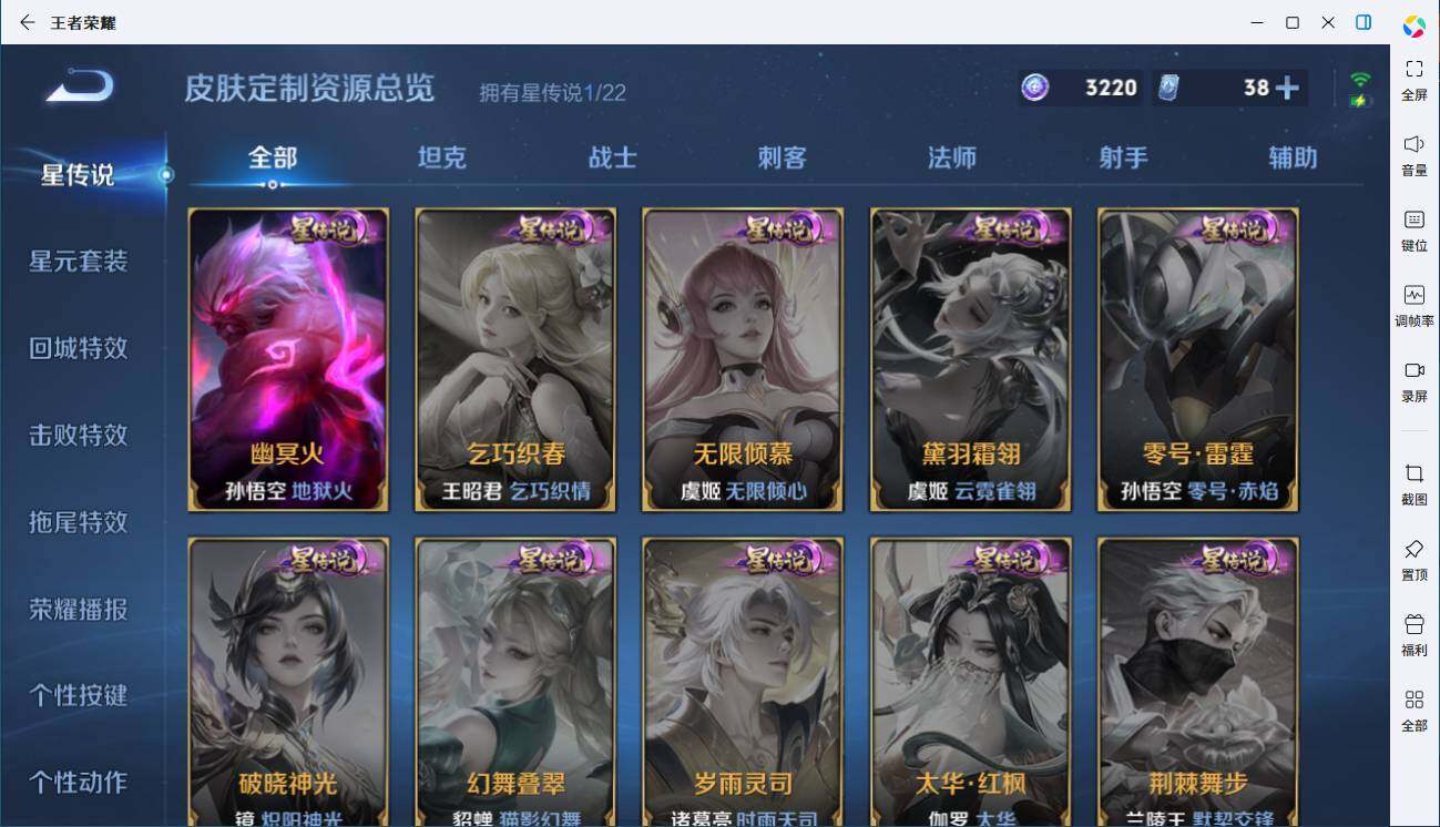 关羽冰锋战神,裴擒虎李小龙,上官婉儿梁祝,马超神威,韩信飞衡,哪吒逐梦之翼,苏烈玄武志,孙悟空至尊宝,桑启鸣野蒿,司空震愿照·山河定