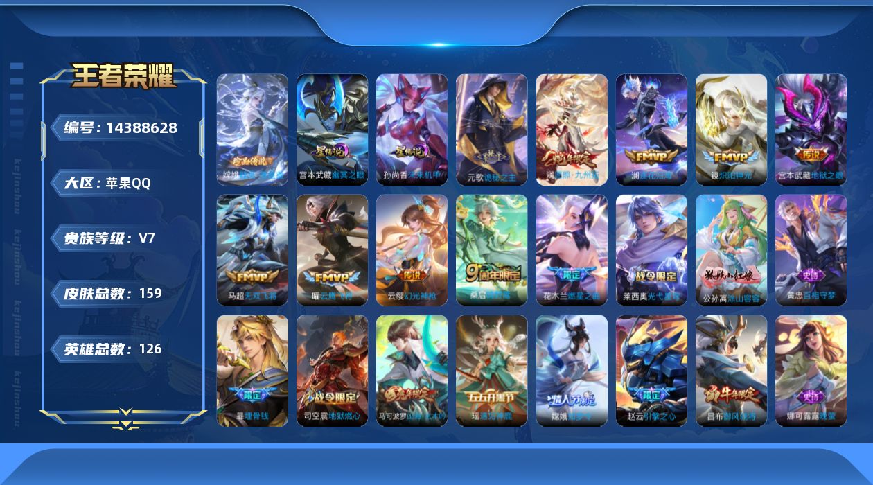 [14388628]金标万战嫦娥 按键8 苹果Q-V7-159皮肤-1珍品传说-11传说-50史诗 【英雄全皮】:嫦娥全皮 【珍品传说】:嫦娥器灵落星盏 【传说皮肤】:后羿神树通天,元歌诡秘之主,澜愿照九州拓,云缨幻光神枪,桑启鸣野蒿,澜逐花归海,花木兰燃星之曲,马超无双飞将,镜炽阳神光,曜云鹰飞将,宫本武藏地狱之眼 【限定皮肤】:暃埋骨钱,姜子牙天穹之誓,李白谪仙醉月,狄仁杰阴阳师,赵云皇家上将,赵云引擎之心,吕布御风骁将,马可波罗山海玄木吟,狄仁杰魔术师,项羽海滩派对,花木兰燃星之曲,李元芳云中旅人,雅典娜黎明之约,鬼谷子五谷丰年,百里玄策原初追逐者,梦奇顽趣,沈梦溪大漠名商,裴擒虎李小龙,裴擒虎擒涛扼浪,米莱狄胡桃异想国,嫦娥如梦令,嫦娥拒霜思,嫦娥暖冬兔眠,鲁班大师探海日志,桑启海盐诗旅,暃星界游侠,艾琳女武神,艾琳流音漫舞,司空震地狱燃心,阿古朵江河有灵,张良古海寻踪,蒙犽百解令,蒙恬荣光圣徽,鬼谷子天穹祈灯,沈梦溪龙舞盛年,刘邦剑破天穹,程咬金群星魔术团 【年限皮肤】:吕布御风骁将,马可波罗山海玄木吟 【赛季限定】:张良古海寻踪,李元芳云中旅人,雅典娜黎明之约,百里玄策原初追逐者,梦奇顽趣,沈梦溪大漠名商,裴擒虎擒涛扼浪,鲁班大师探海日志,桑启海盐诗旅,鬼谷子天穹祈灯,蒙恬荣光圣徽,刘邦剑破天穹,姜子牙天穹之誓 【战令限定】:艾琳流音漫舞,米莱狄胡桃异想国,嫦娥暖冬兔眠,司空震地狱燃心,暃星界游侠 【史诗皮肤】:露娜紫霞仙子,赵云皇家上将,貂蝉圣诞恋歌,甄姬冰雪圆舞曲,狄仁杰魔术师,宫本武藏鬼剑武藏,孙尚香水果甜心,妲己魅力维加斯,吕布末日机甲,张飞乱世虎臣,赵云引擎之心,花木兰水晶猎龙者,夏侯惇乘风破浪,兰陵王暗隐猎兽者,亚瑟心灵战警,雅典娜冰冠公主,百里守约特工魅影,铠曙光守护者,蔡文姬舞动绿茵,刘禅天才门将,程咬金功夫厨神,孙策猫狗日记,狄仁杰鹰眼统帅,娜可露露晚萤,嫦娥如梦令,瑶遇见神鹿,百里玄策原初追逐者,裴擒虎李小龙,吕布御风骁将,米莱狄胡桃异想国,嫦娥拒霜思,雅典娜黎明之约,鬼谷子五谷丰年,梦奇顽趣,暃星界游侠,马可波罗山海玄木吟,刘禅电玩爆裂旋风,镜真我赫兹,司空震地狱燃心,阿古朵江河有灵,蒙犽百解令,蒙恬荣光圣徽,暃埋骨钱,马可波罗星界特工,李白谪仙醉月,牛魔星界战将,弈星万物之道,黄忠百相守梦,公孙离涂山容容,莱西奥光弋星穹 【其他皮肤】:项羽海滩派对
