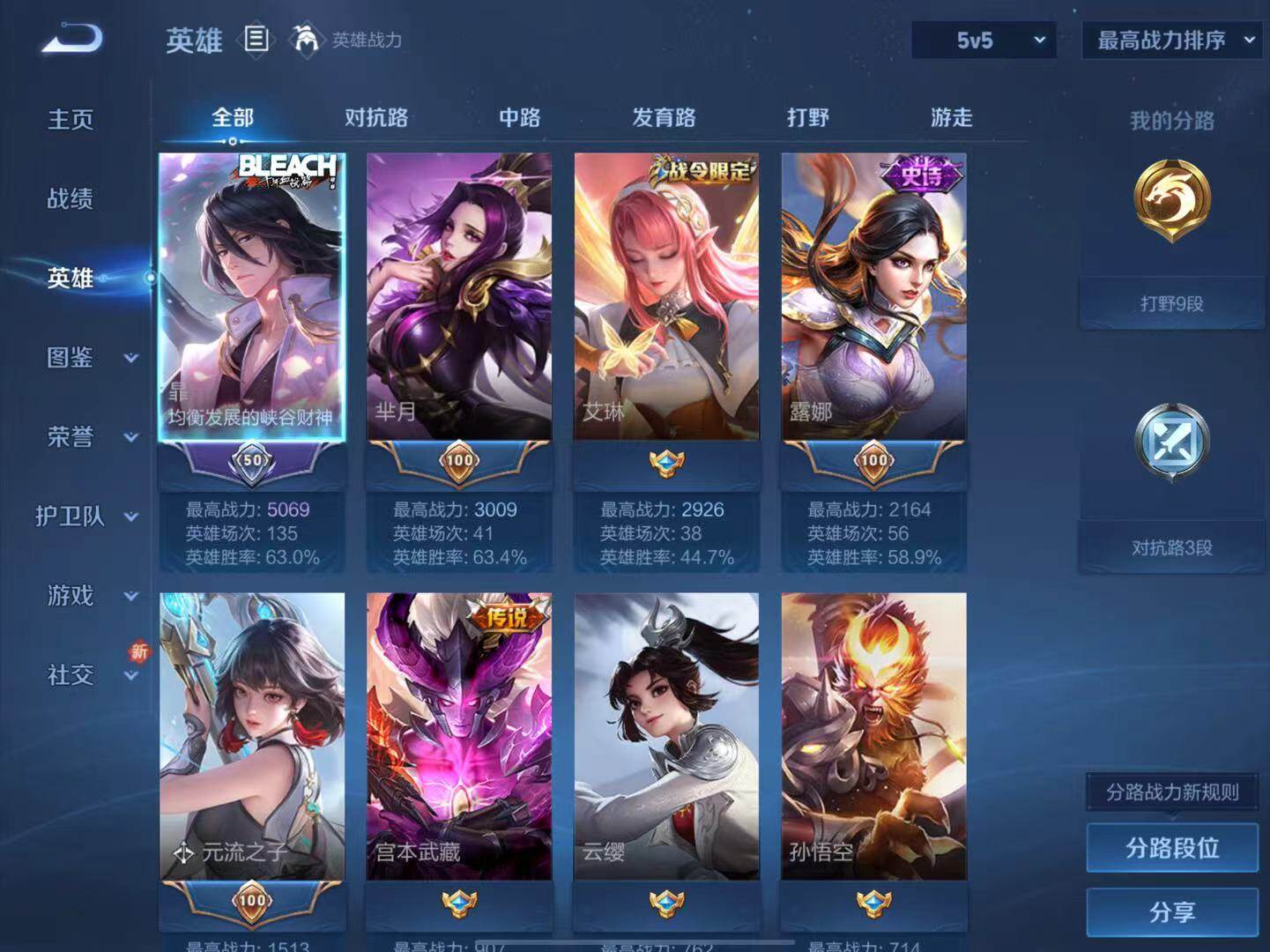 - PX_2106949-实名: 可修改 贵族等级: V6 英雄数: 111 皮肤数: 122 传说皮: 黄金狮子座,游龙清影,澜逐花归海 限定皮: 大圣娶亲,孙行者,山海·玄木吟,鸣野蒿,愿照·九州拓